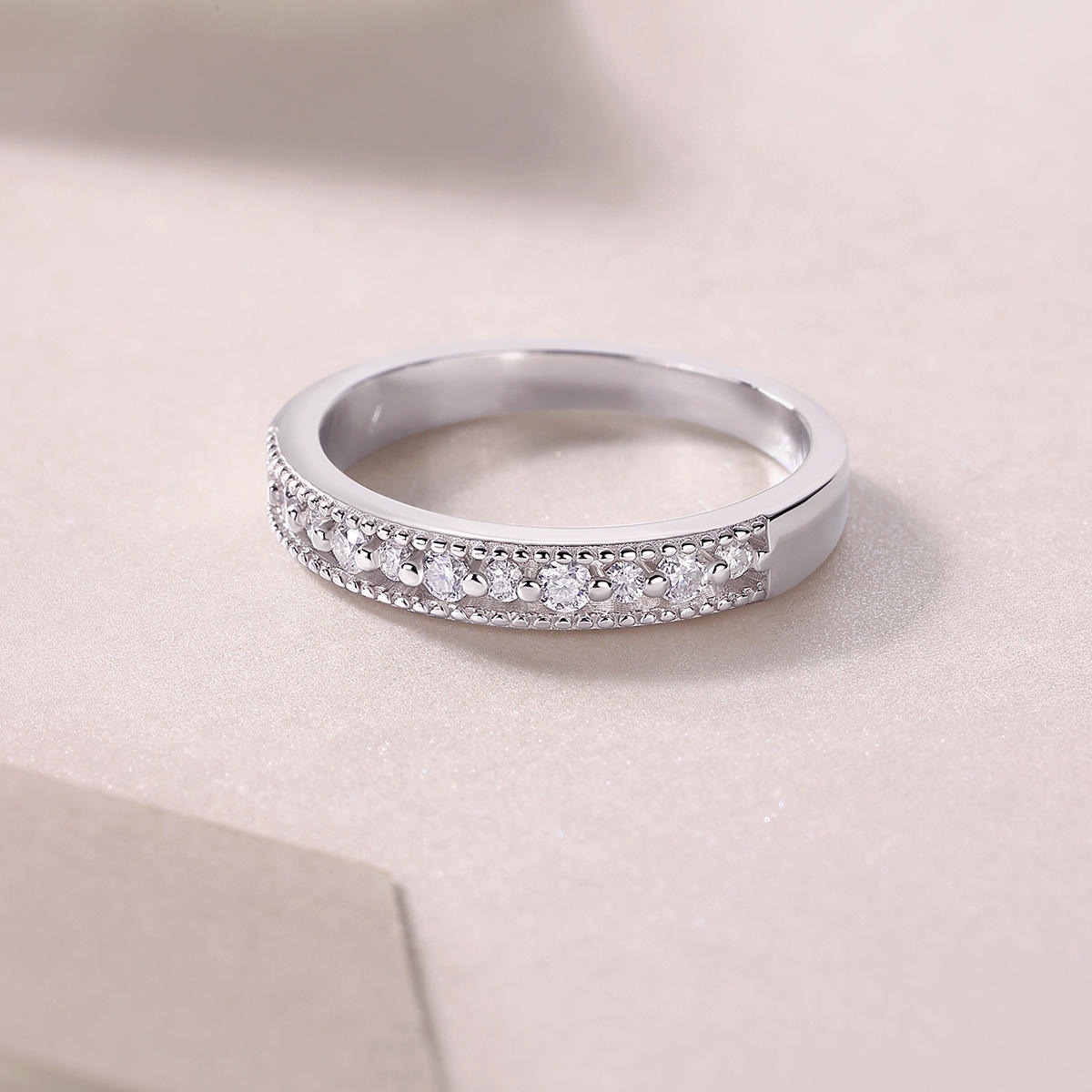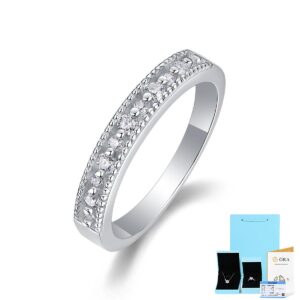 0.15ct 2mm Moissanite Diamond Ring Women S925 Sterling Silver GRA Certified Semi-Eternity Engagement Wedding Band
