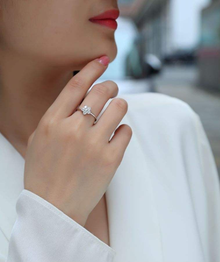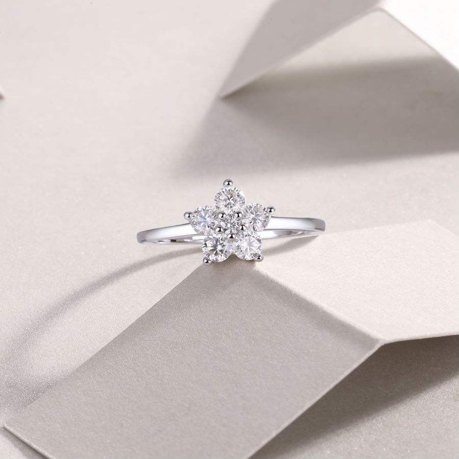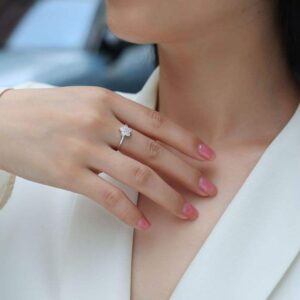 0.53Ct Moissanite Ring 18K White Gold Plated Women’s S925 Silver Engagement Wedding Jewelry