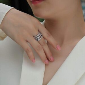 S925 Silver Jewelry Set Women’s Three-Piece Open Butterfly Ring Asymmetrical Tassel Stud Earrings Simple Necklace Versatile