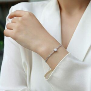Fashion Elegant Boutique Silver Bracelet Round Cut Moissanite Pendant Bracelet Charm Sexy Bracelet