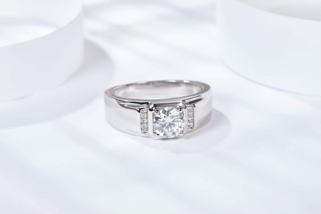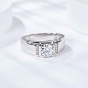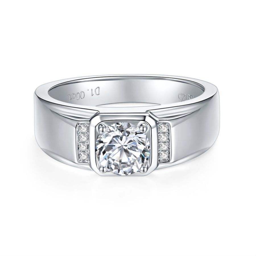 1 Carat Moissanite S925 Silver Men’s Ring – Elegant High-End Wedding Band