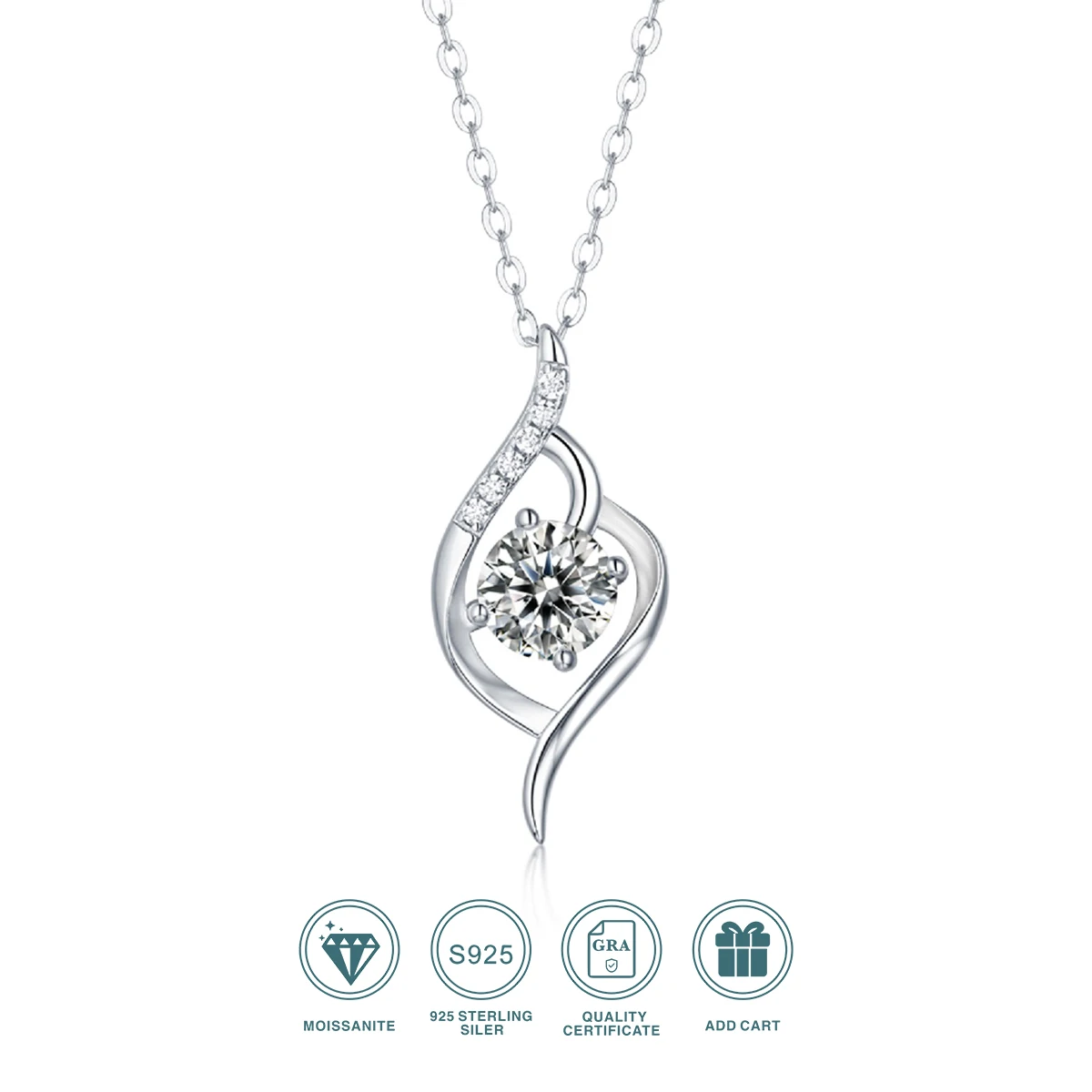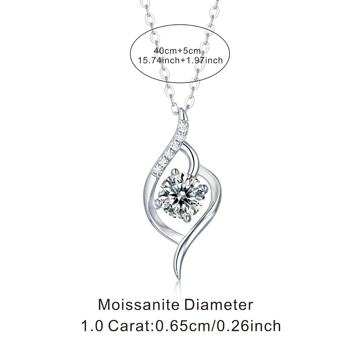 1 Carat Water Drop Necklace S925 Sterling Silver Round Moissanite Diamond Necklace