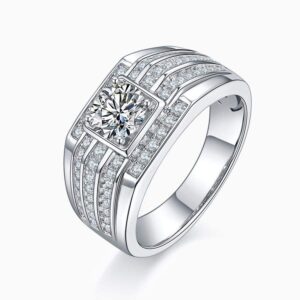 1 Ct Moissanite Ring Men’s 925 Silver Luxury Engagement