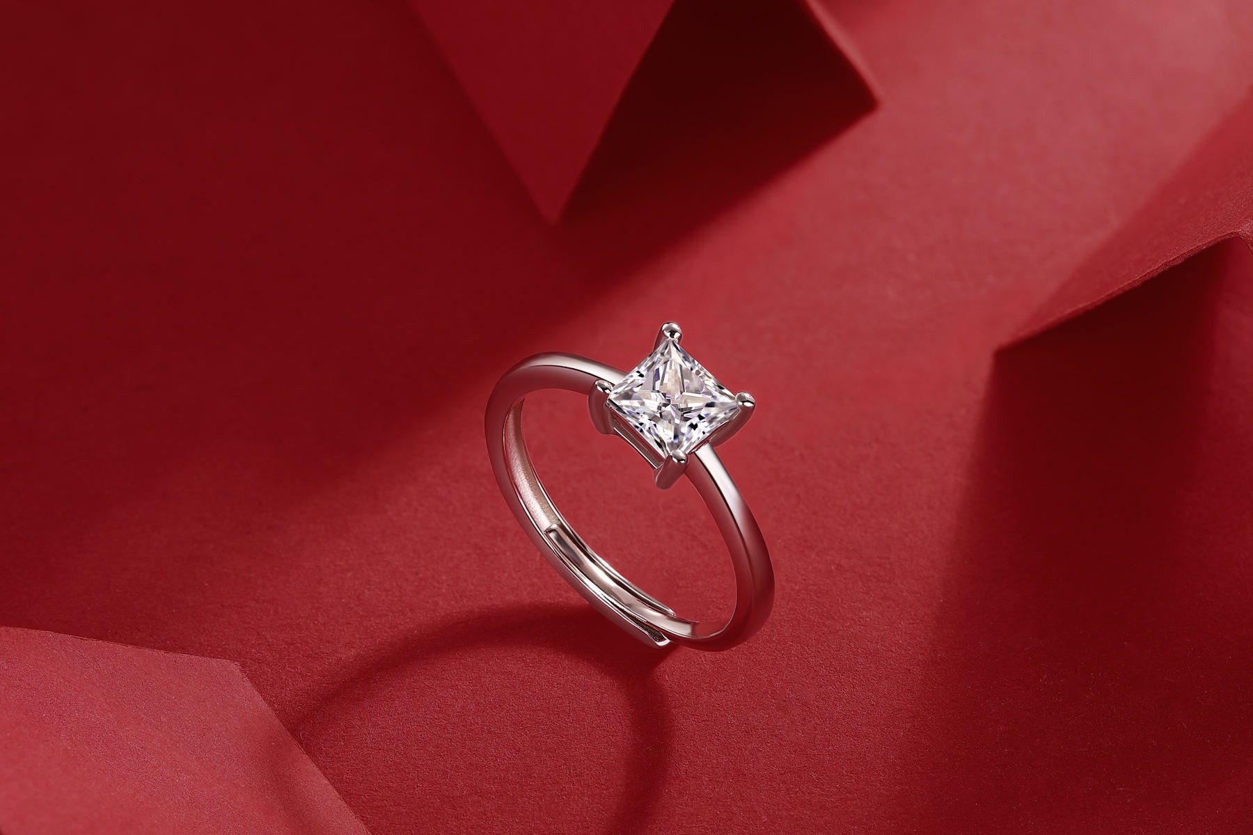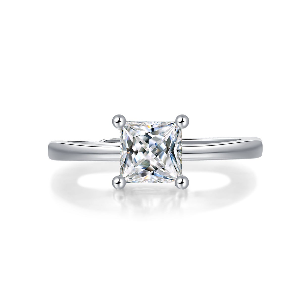 S925 silver ring silver pure silver women’s imitation diamond ring square zircon jewelry manufacturer a hand-made jewelry