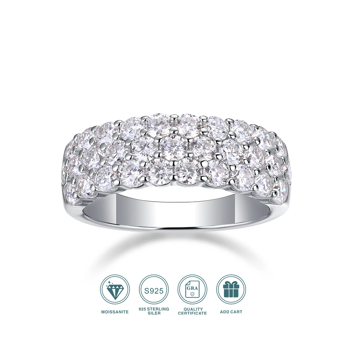 2.5mm 1.8 ct moissanite rings s925 silver diamond half eternity wedding ring