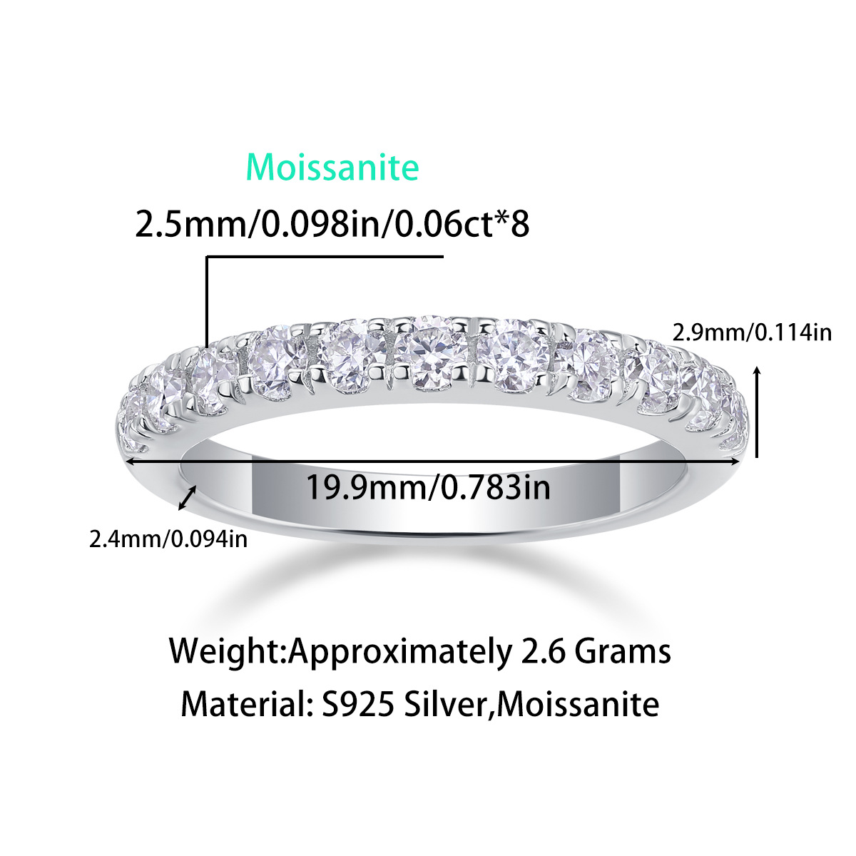 Material: 100% 925 Silver Moissan ite Ring