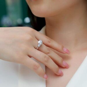 2CT Moissanite 925 Silver Engagement Ring for Women 18K White Gold Plated
