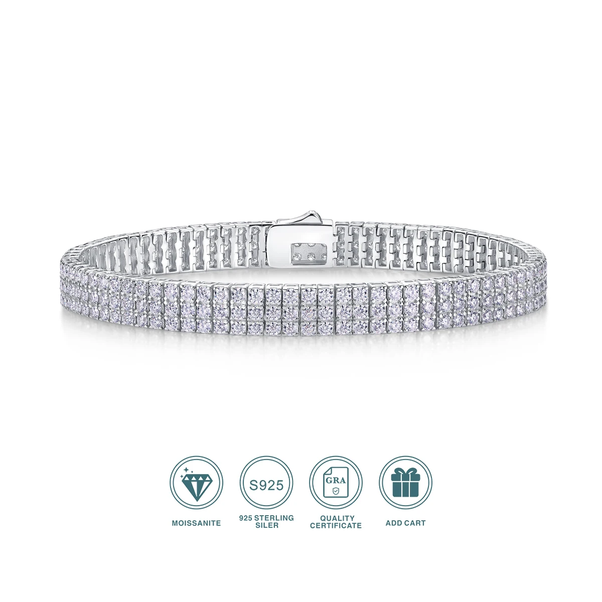 2mm Elegant 3 Rows Moissanite Tennis Bracelet S925 Sterling Silver Exquisite Fashion Wristlets