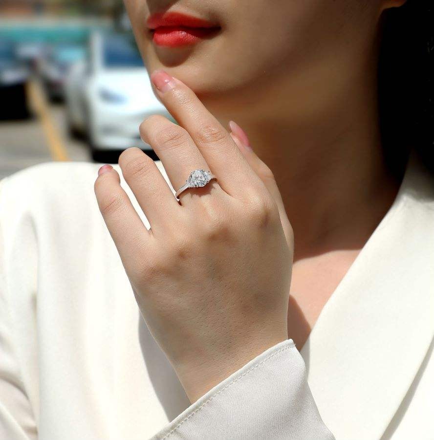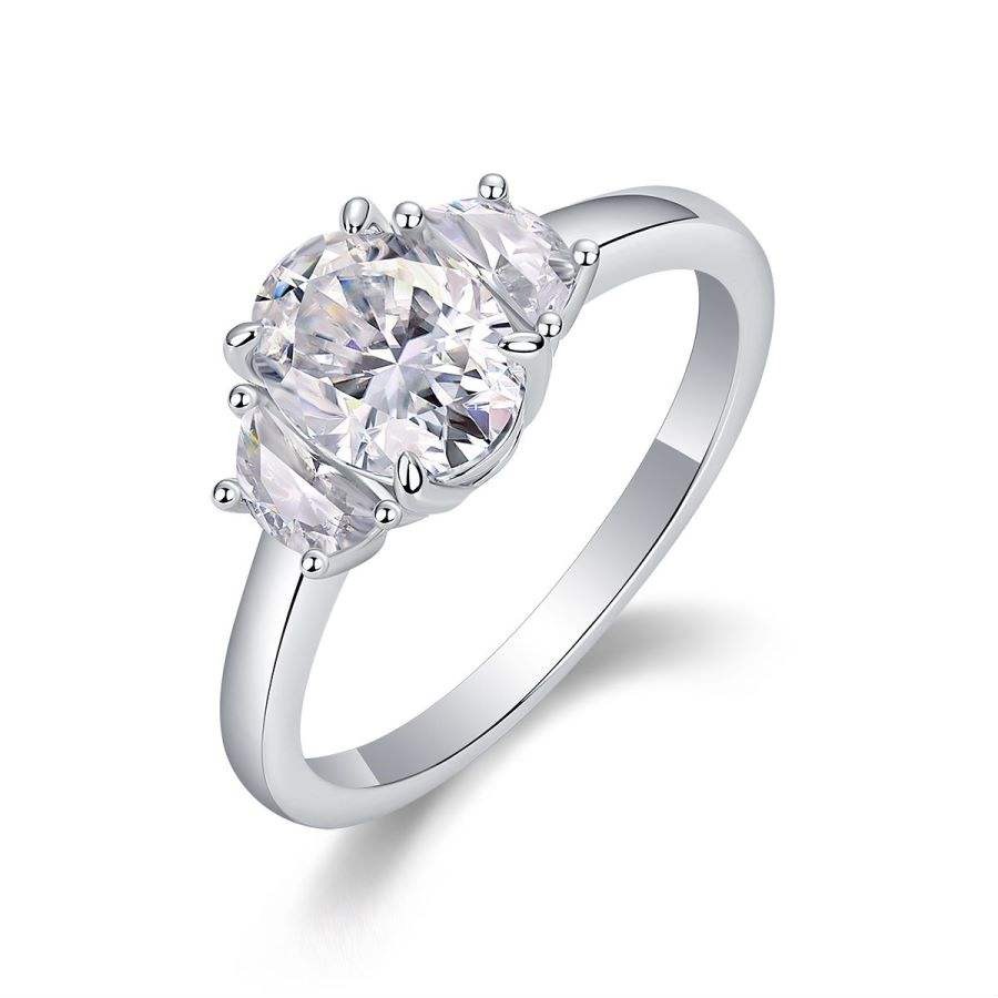 3 Stone Moissanite Engagement Ring for Women 925 Silver Oval Cut D Color GRA Certified