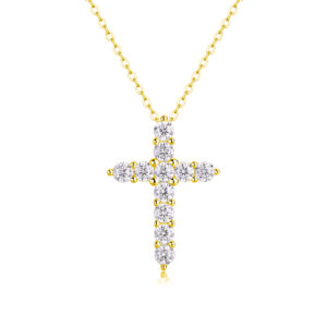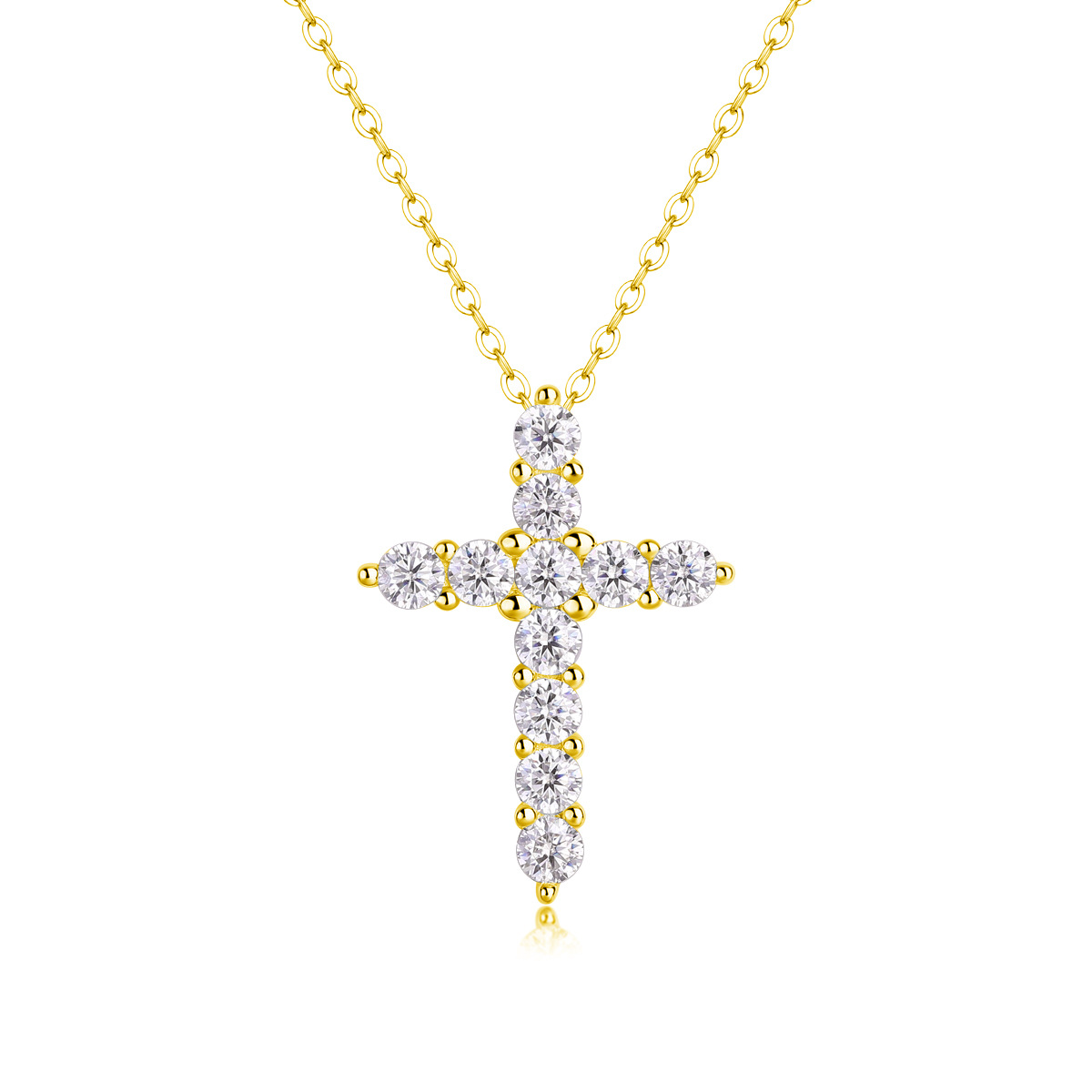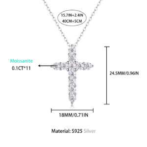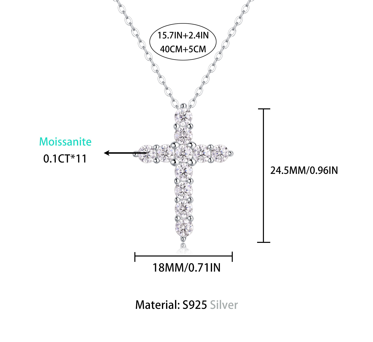 3mm S925 Silver Pendant Necklace Cross Round Moissanite Diamond Wedding Necklace
