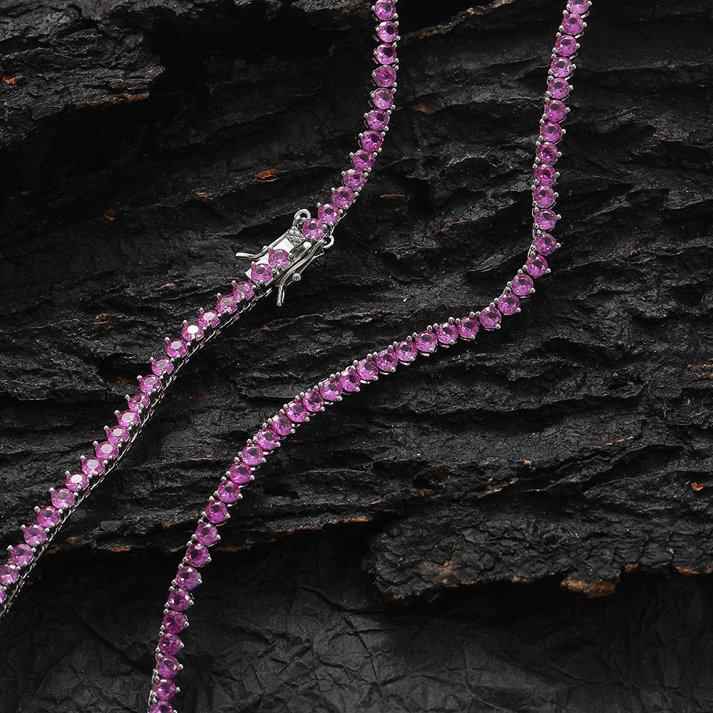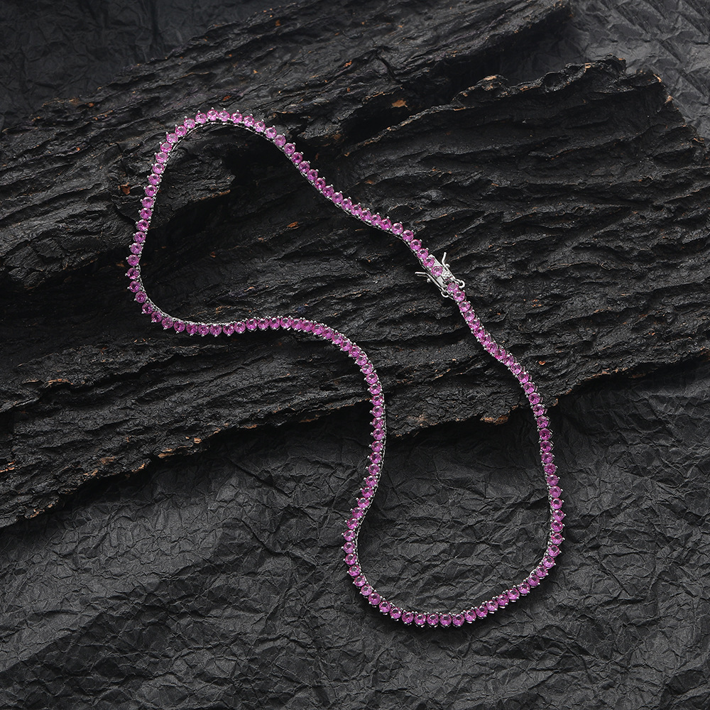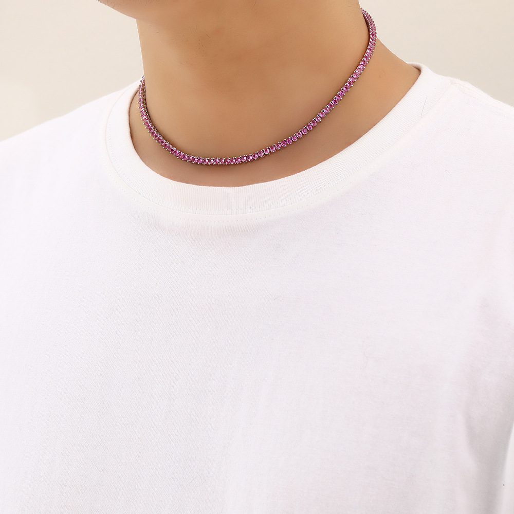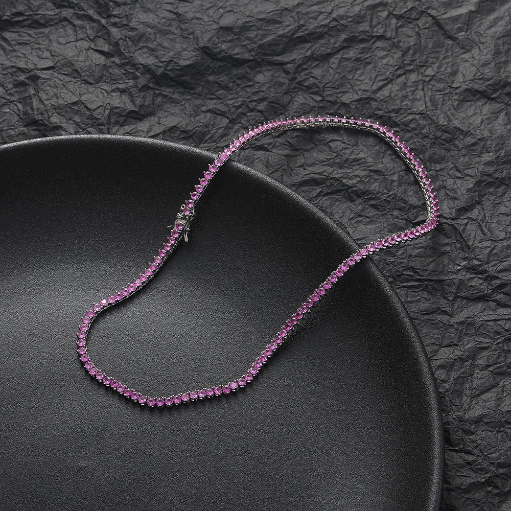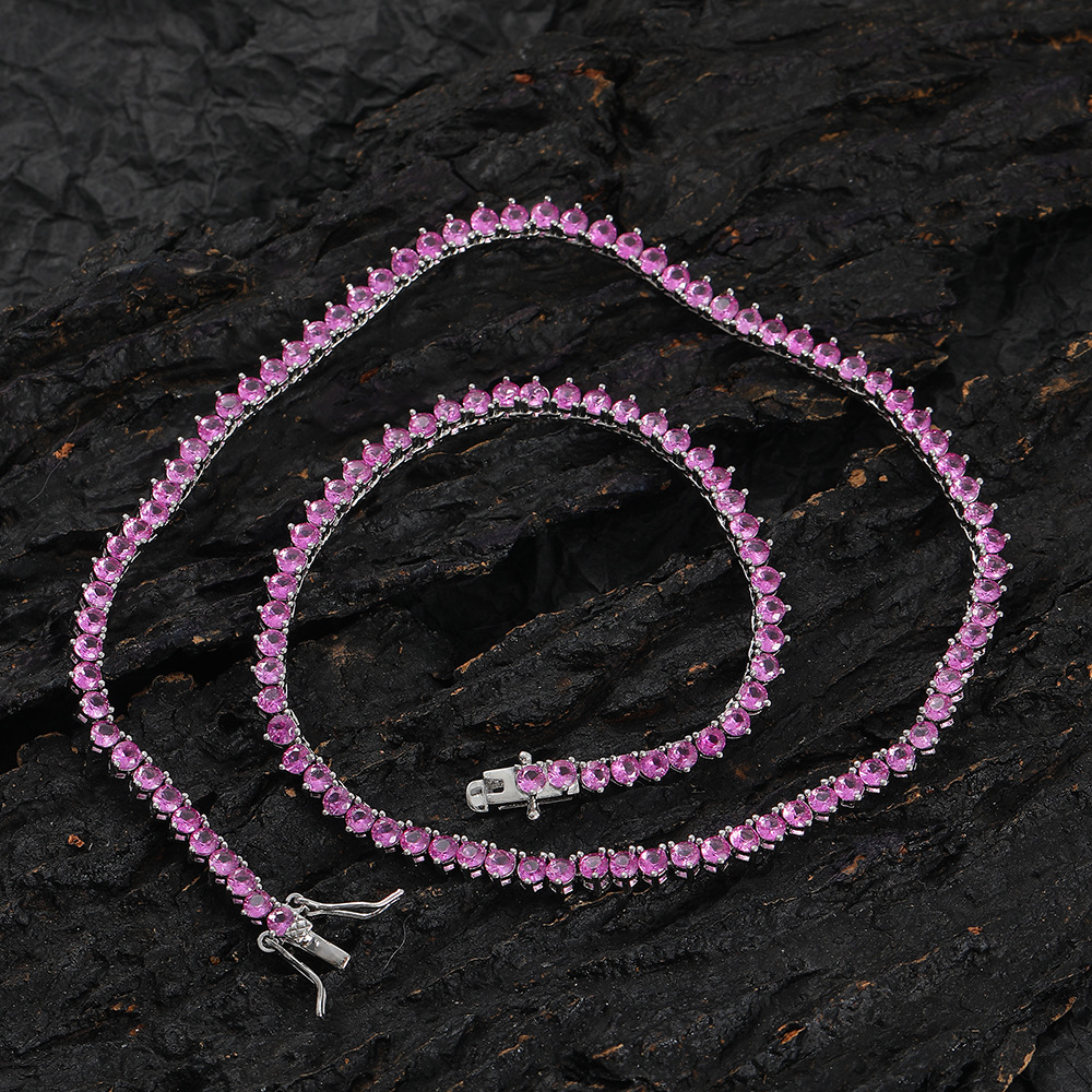 3mm three-claw red corundum tennis chain hip-hop rose red zircon necklace