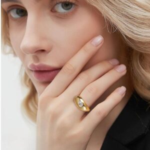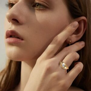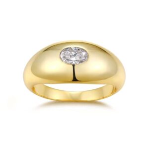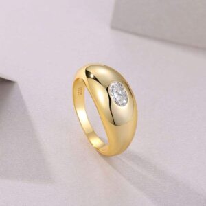 4x6mm Oval Cut Moissanite Bold Dome Ring 18K Gold Plated S925 Silver