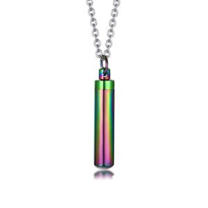 5 color Cylinder Cremation Urn Necklace for Ashes Memorial Keepsake Pendant Stainless Steel Remembrance Jewelry for Women or Men