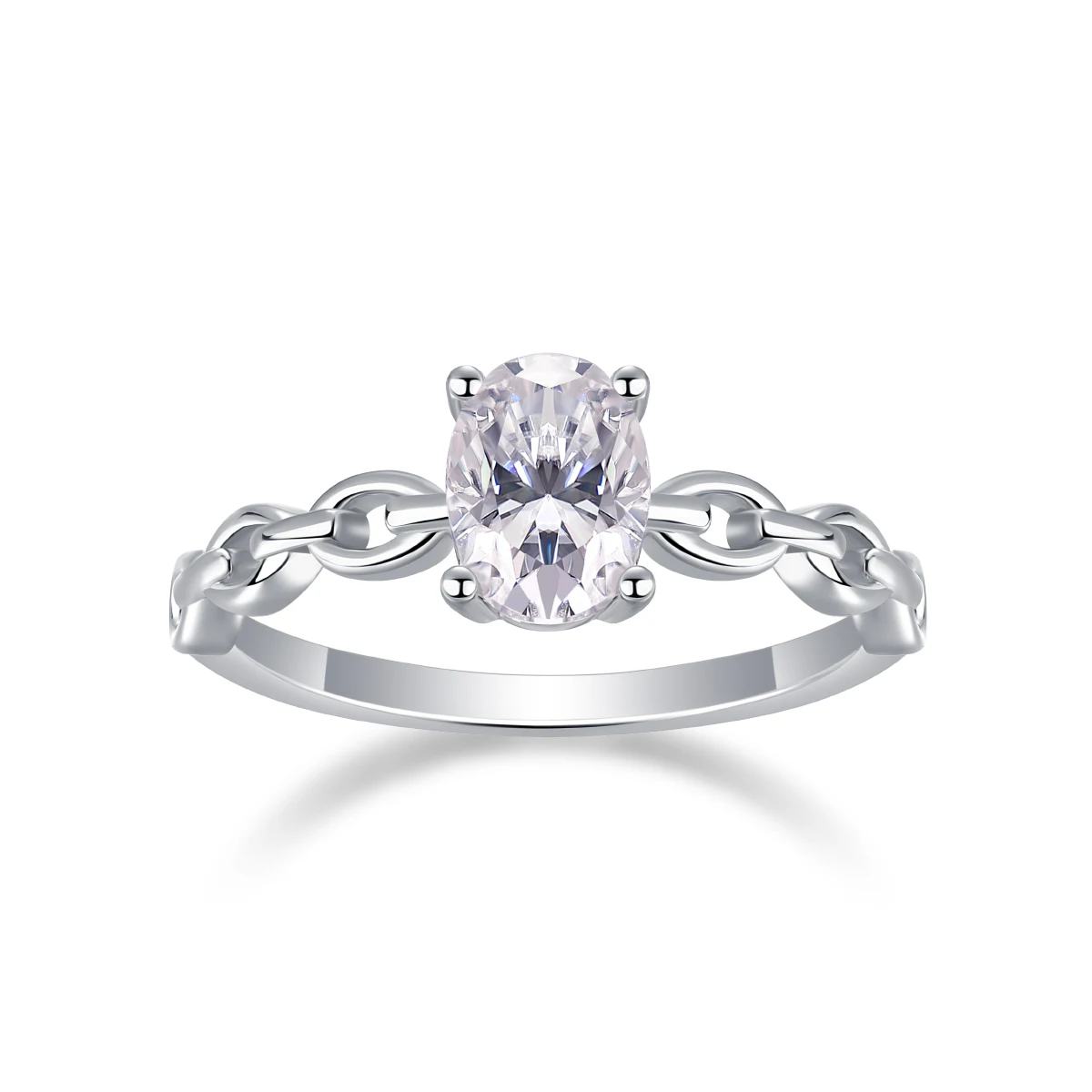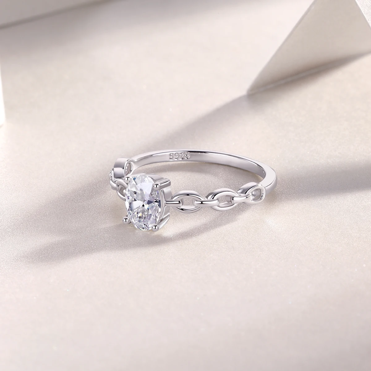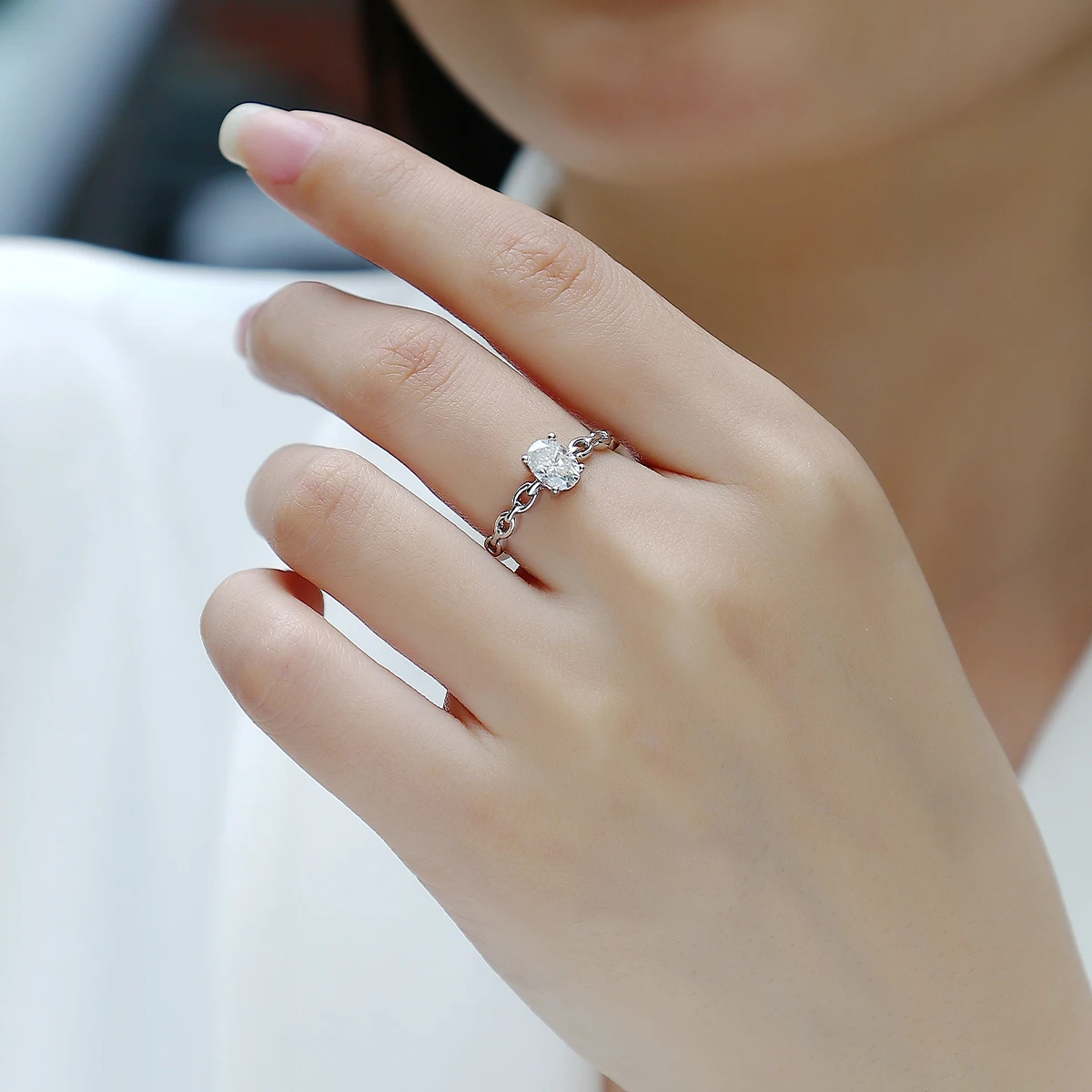 5*7mm Egg Shape S925 Sterling Silver Ring Oval Cut Moissanite Engagement Ring