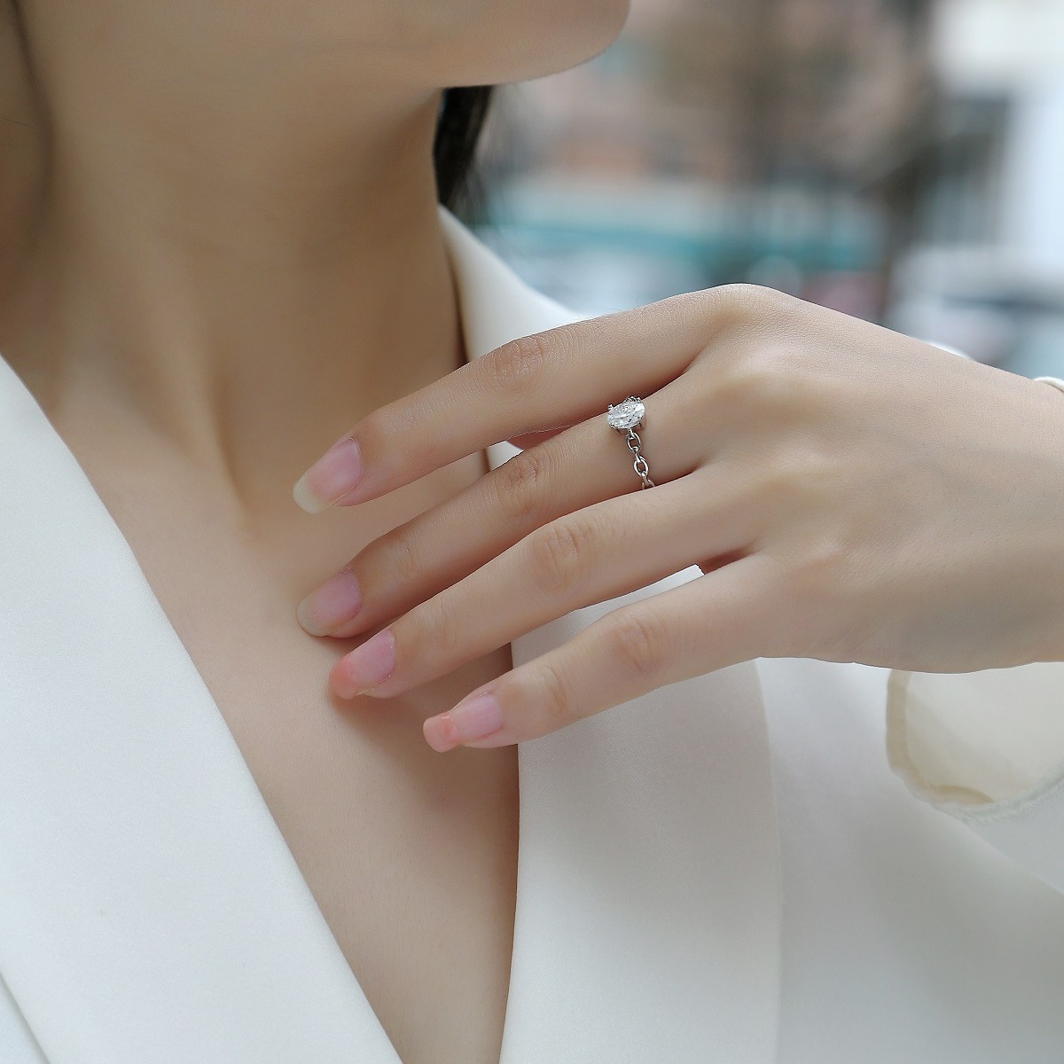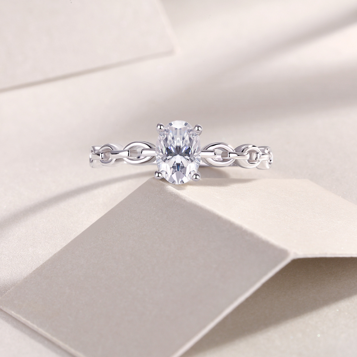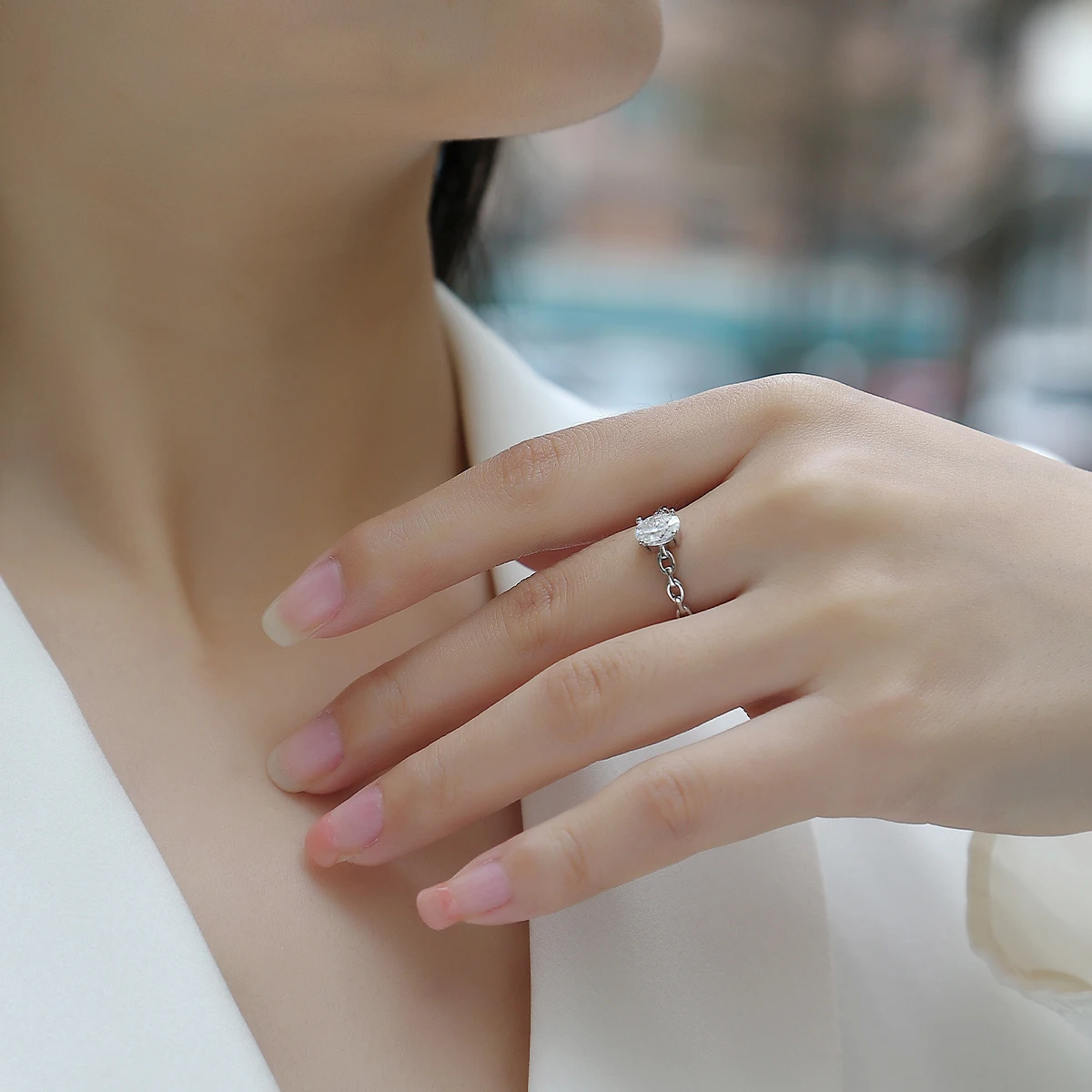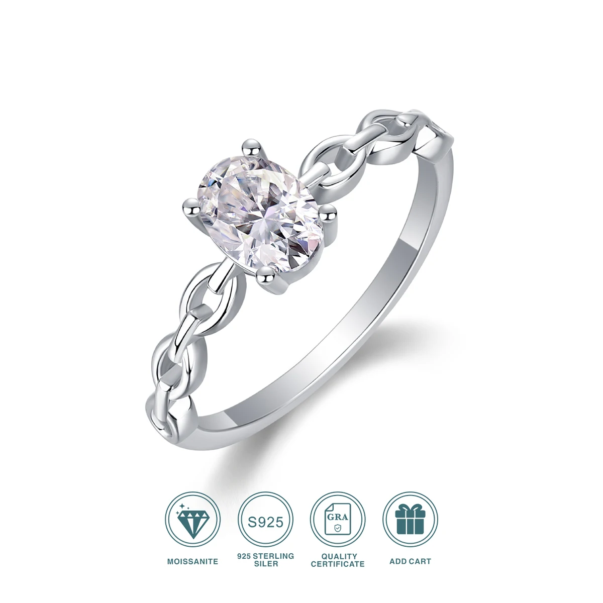 5*7mm Egg Shape S925 Sterling Silver Ring Oval Cut Moissanite Engagement Ring