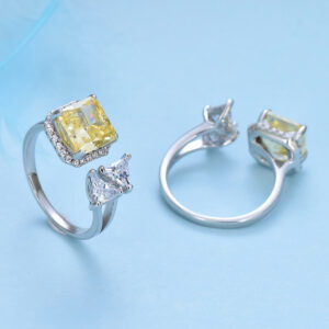 925 silver exaggerated index finger ring fashionable double triangle square yellow zircon ring