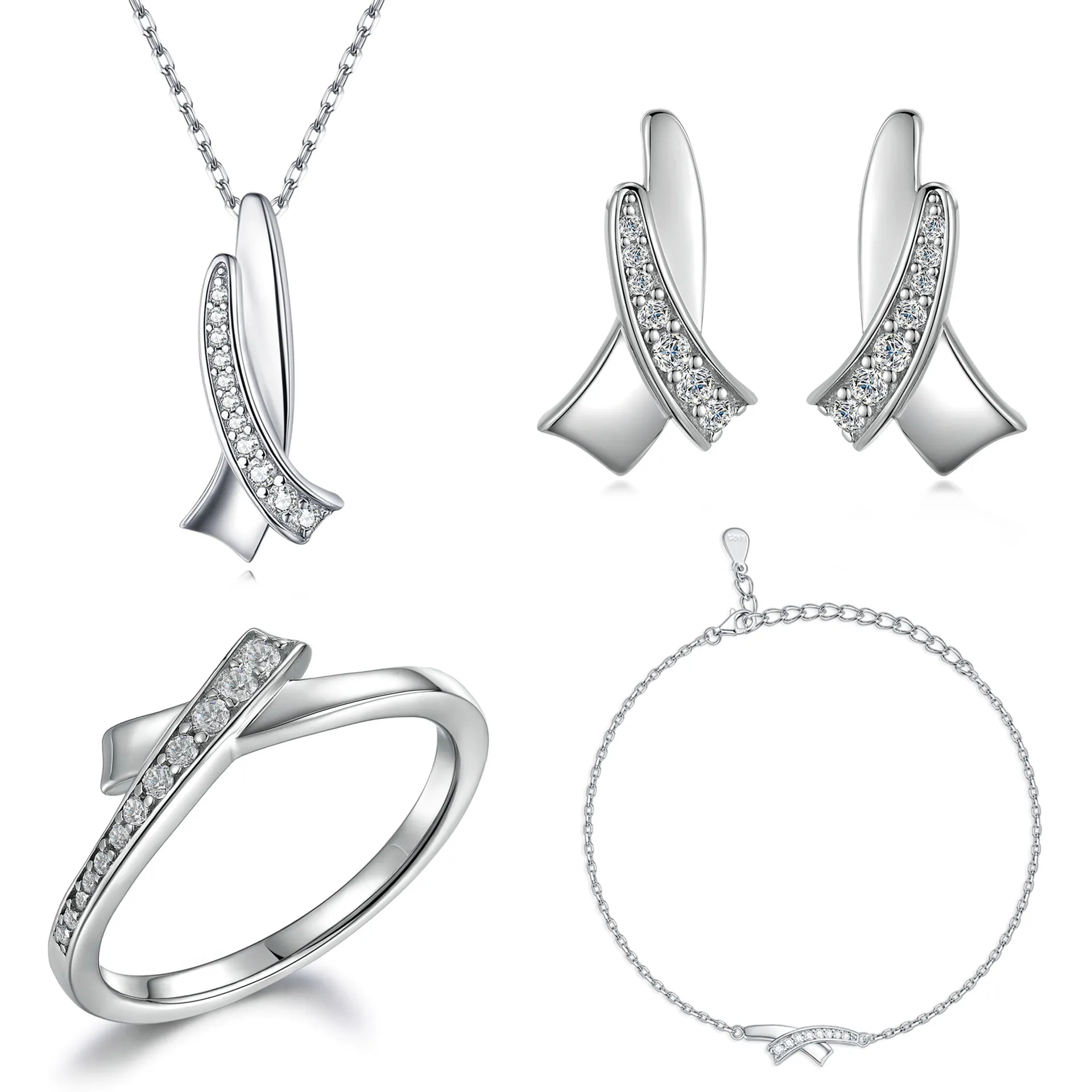 925 sterling silver bow jewelry set stud earrings rings simple necklace silver bracelet