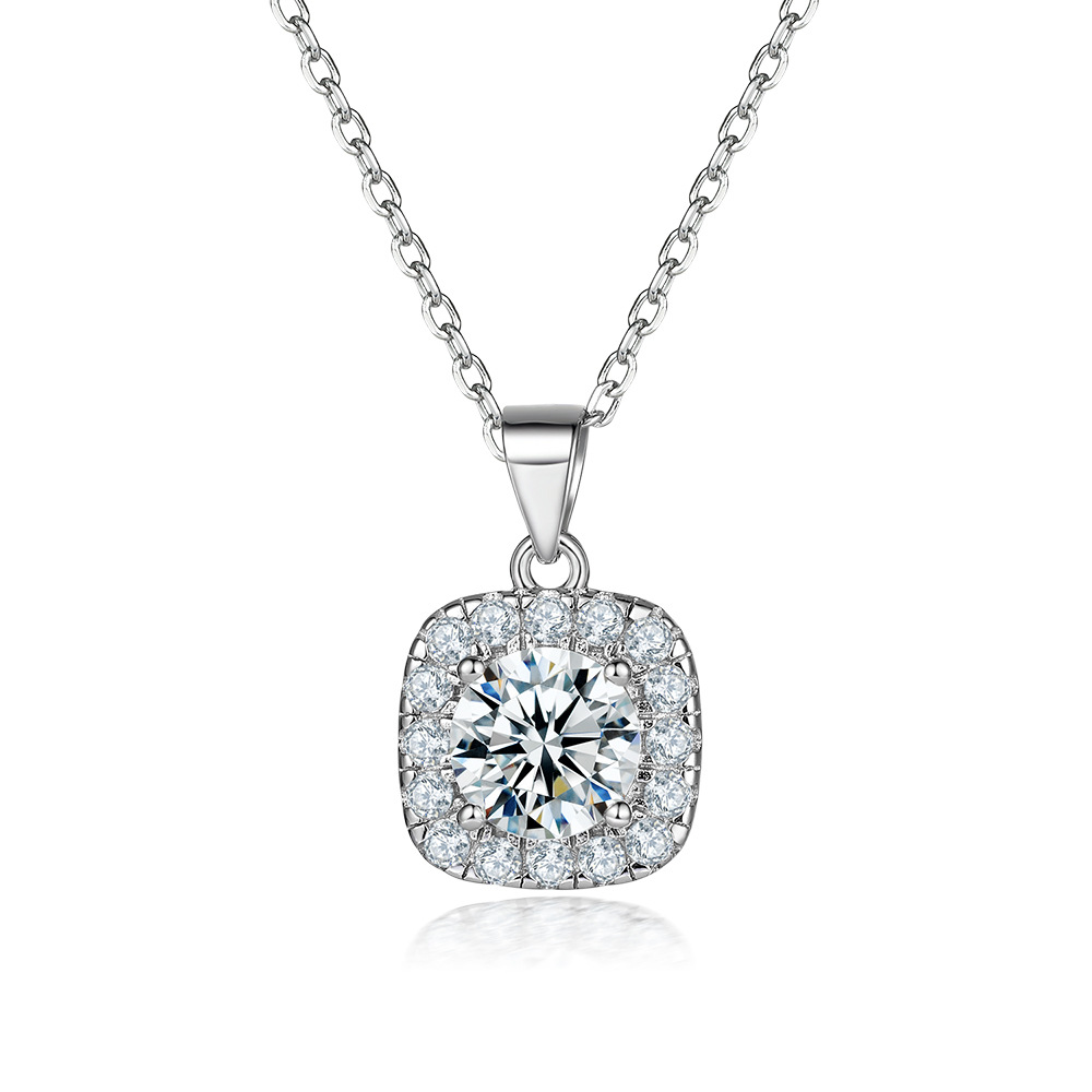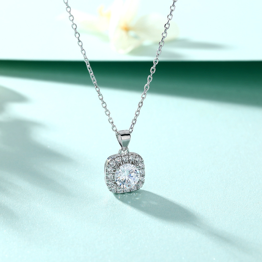 S925 sterling silver jewelry set European and American zircon square diamond ring necklace ins square stud earrings