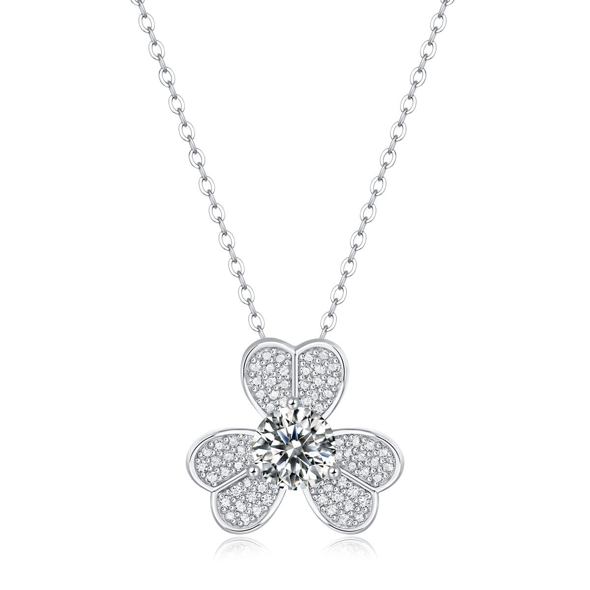 925 Sterling Silver Pendant 1 Carat Moissanite with White Gold Trendy Charm Necklaces