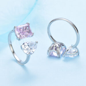 925 sterling silver pink square teardrop-shaped zircon inlaid open adjustable ring