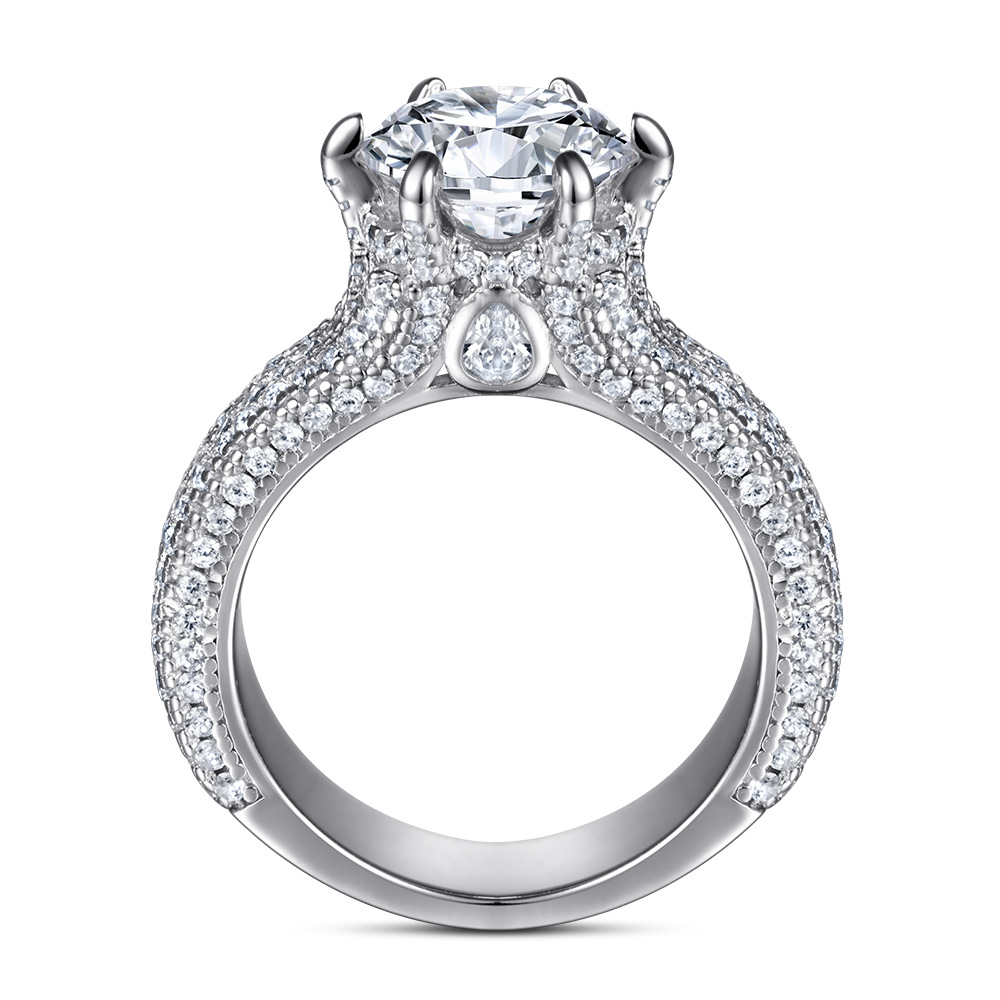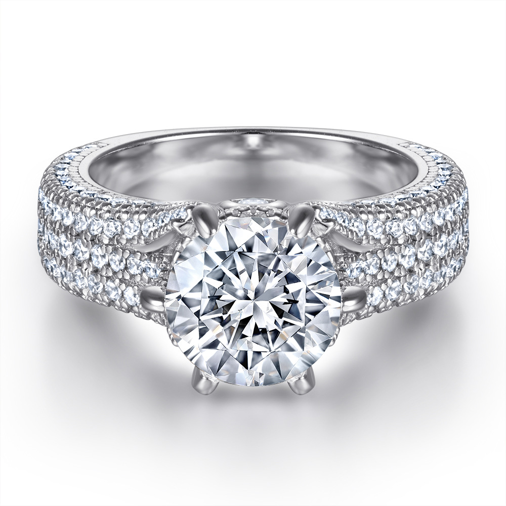 925 sterling silver ring female six-prong micro inlaid zircon ring