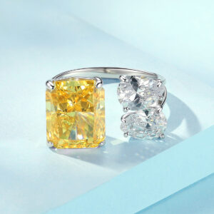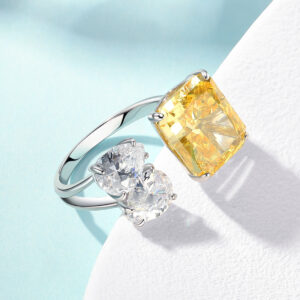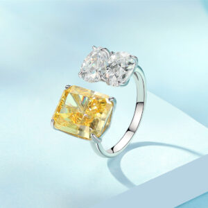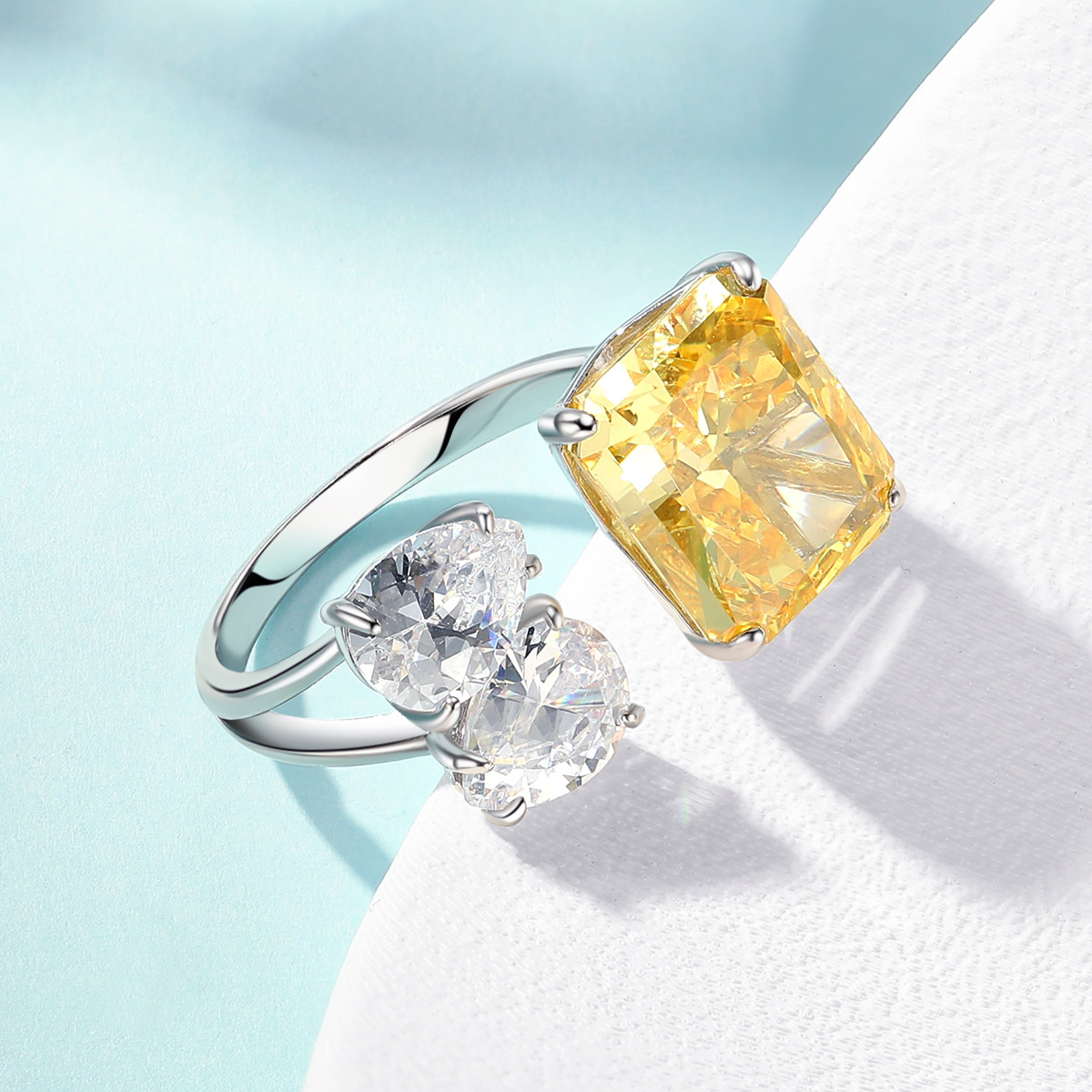 925 sterling silver yellow square zircon inlaid open adjustable ring