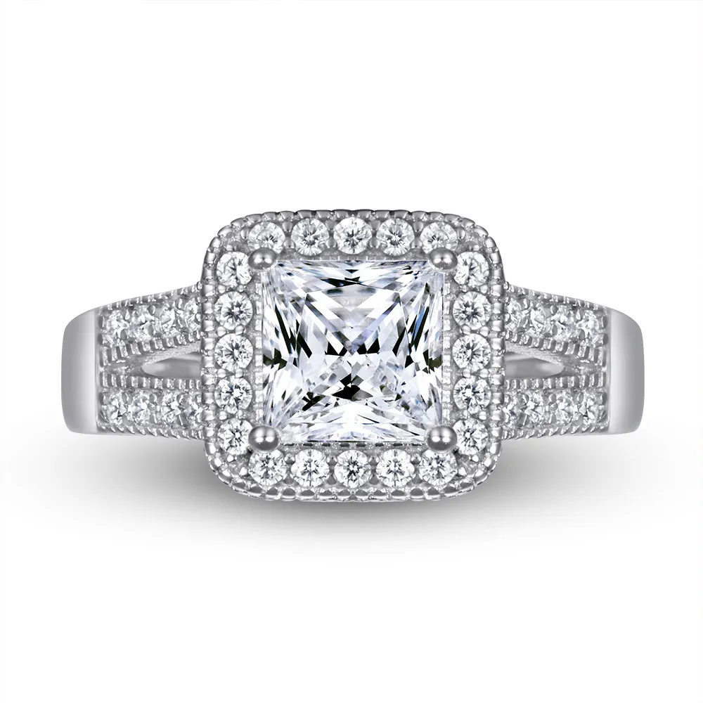 S925 sterling silver ring square moissanite engagement wedding ring for women