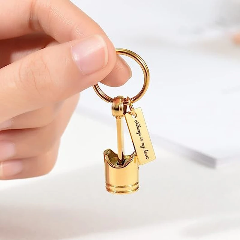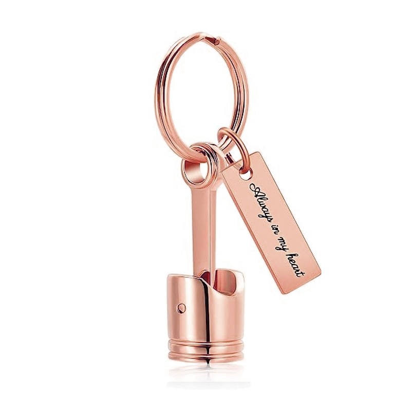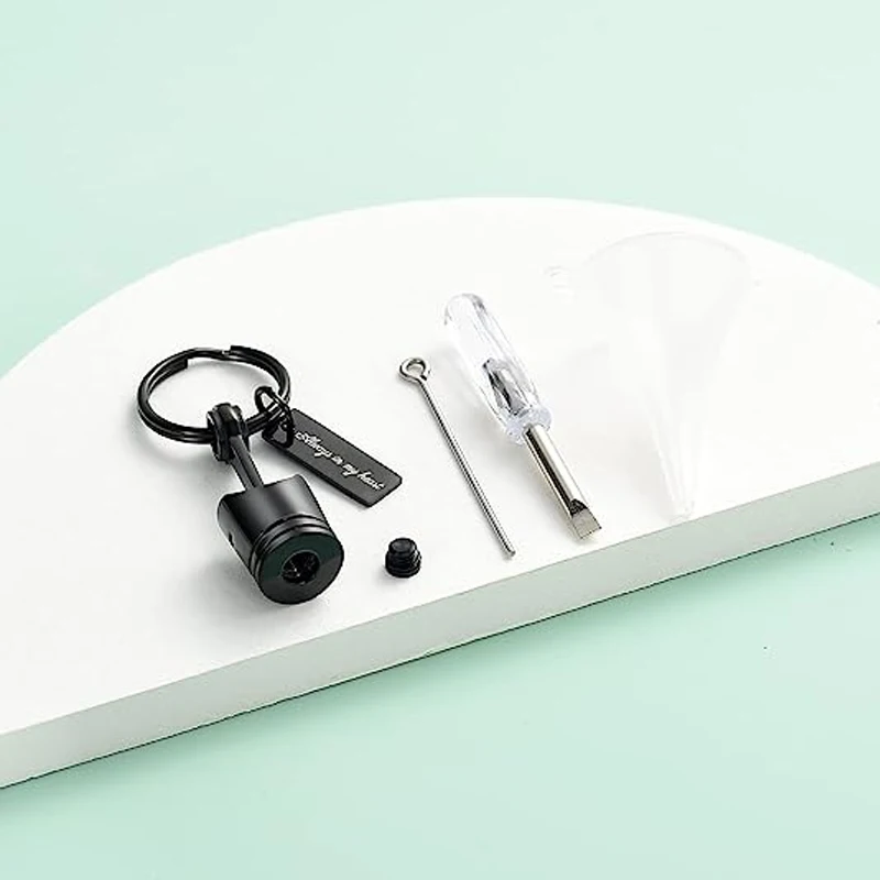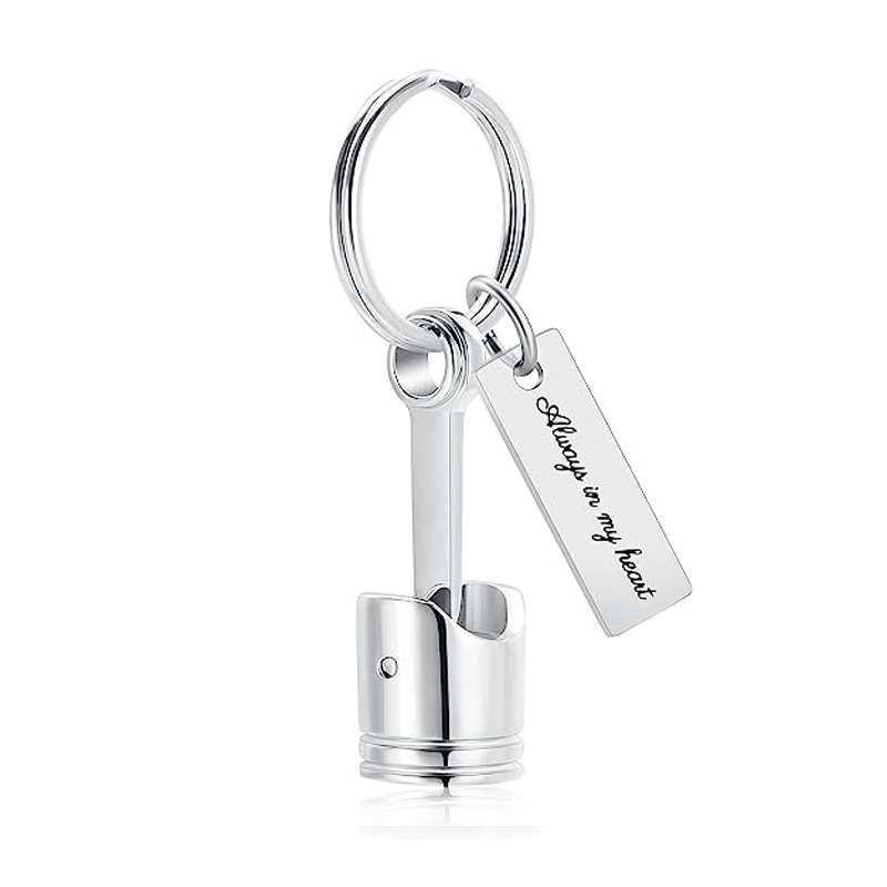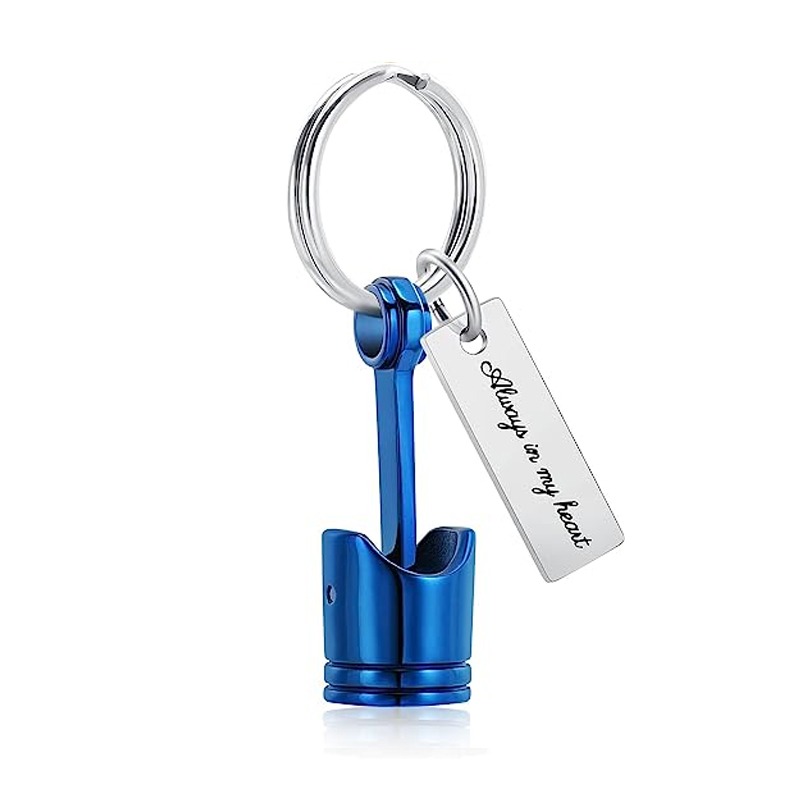 Auto Part Cremation Urn Keychain for Ashes for Men’s Motor Piston Ashes Keepsake Memorial Jewelry for Dad