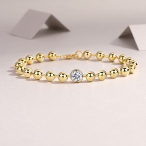 Bead Chain Bracelet S925 Sterling Silver Gold Plated Delicate Ball Chain Design Perfect for Layering or Wearing with Pendants