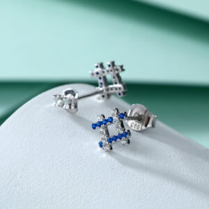 Blue zircon stud earrings cross-border fashion personality S925 sterling silver earrings