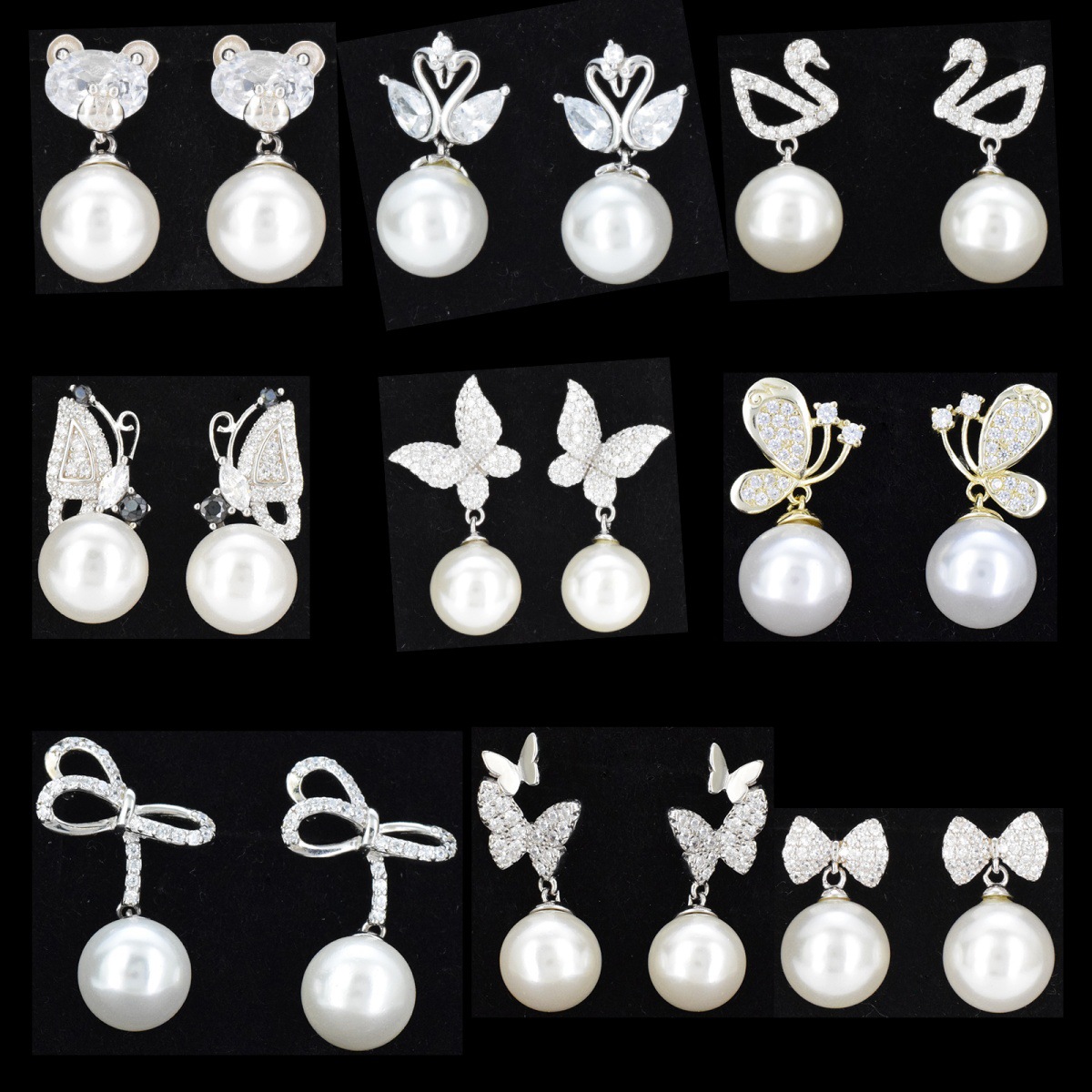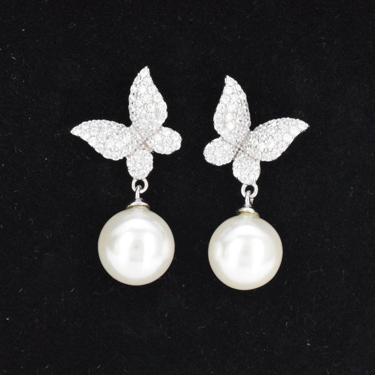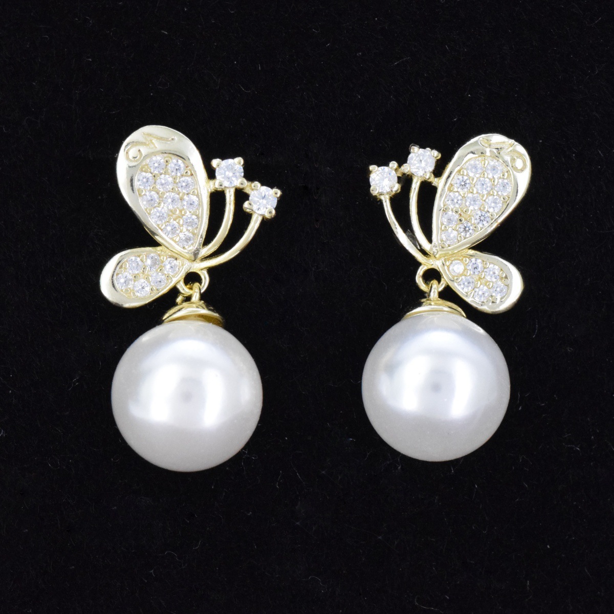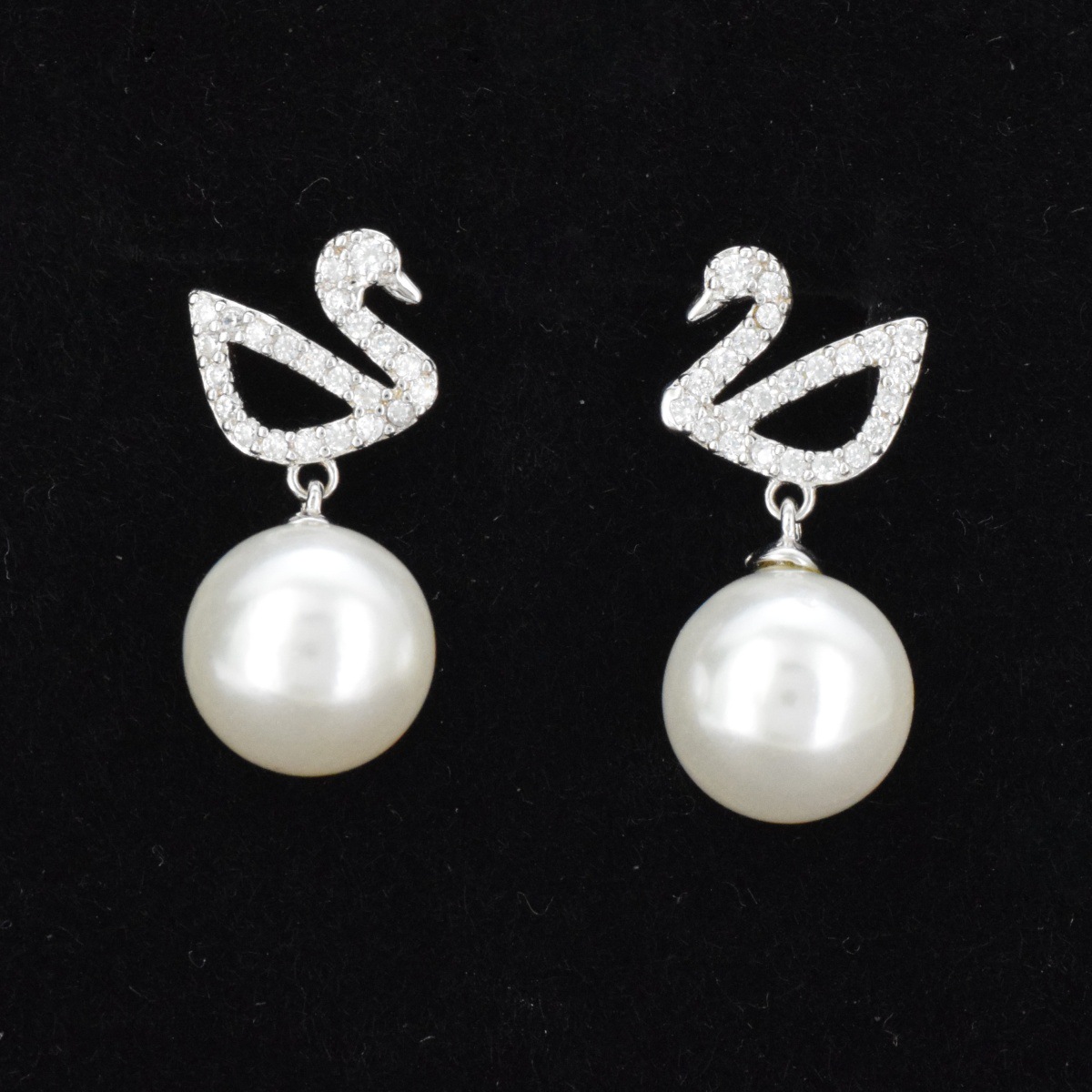 Butterfly pearl stud earrings S925 sterling silver pin stud earrings cute super fairy earrings white swan delicate ear clip earrings