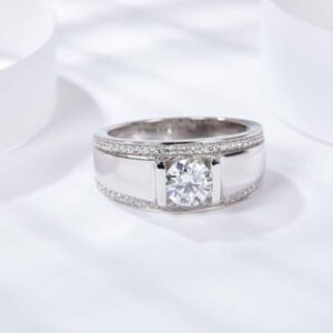 Charming Moissanite Men’s Ring, 1/2 Carat, 925 Silver
