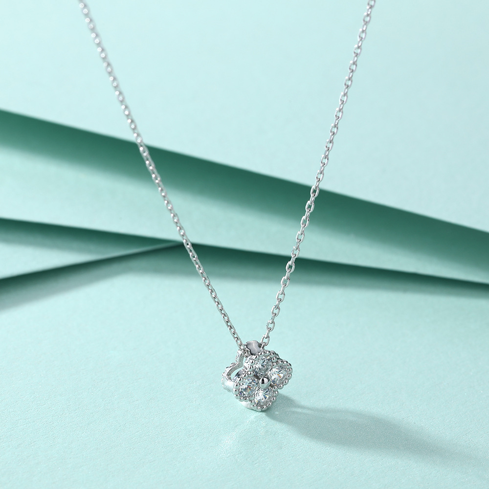 Clover necklace silver pure silver female niche design light luxury zircon pendant 925 silver clavicle chain full of diamonds sense of luxury