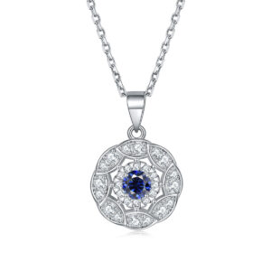 S925 sterling silver square square sapphire pendant fashion personality silver ornament fish water deep necklace women’s niche design