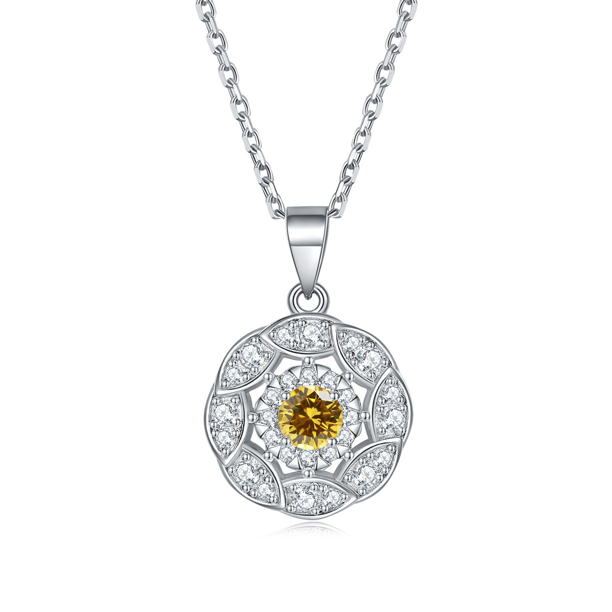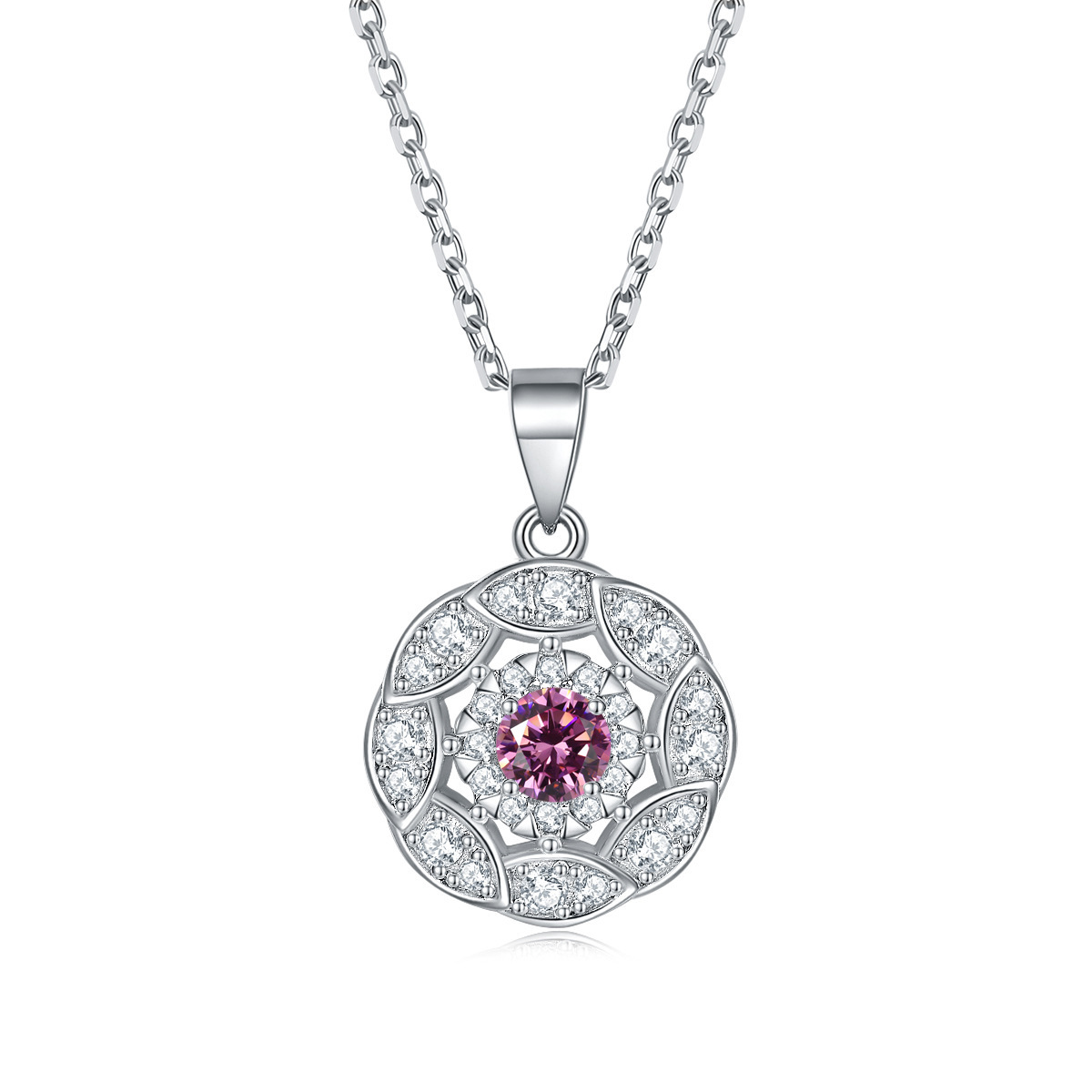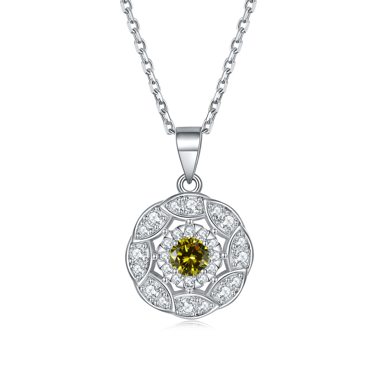 Color Zircon Zodiac Ladies 925 Sterling Silver European and American Necklace Premium Foreign Trade New Round Clavicle Chain