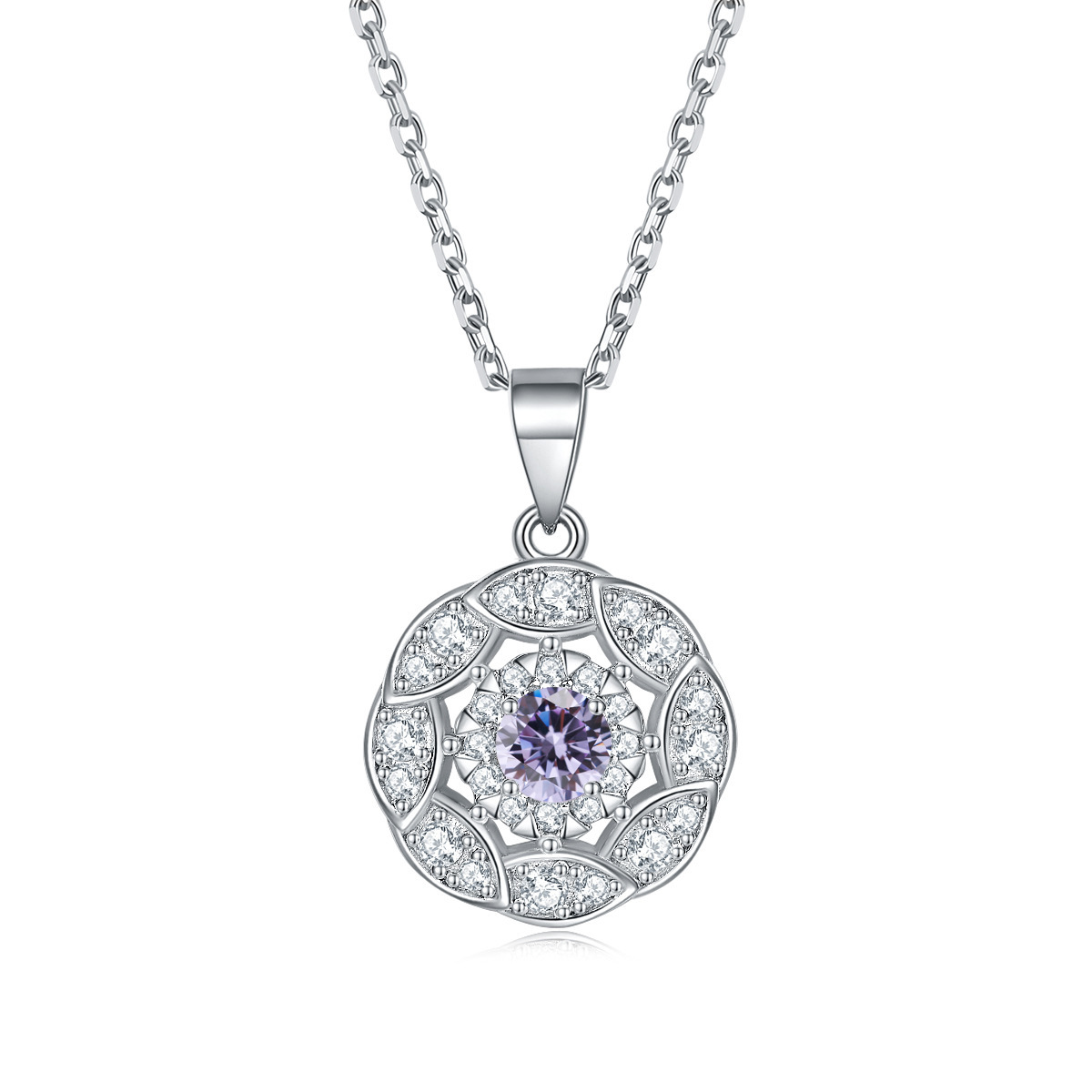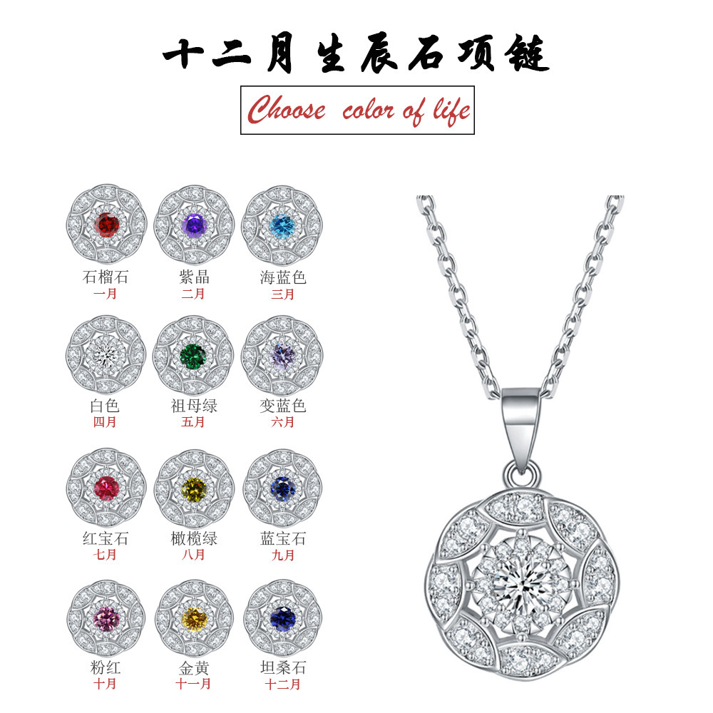 Color Zircon Zodiac Ladies 925 Sterling Silver European and American Necklace Premium Foreign Trade New Round Clavicle Chain