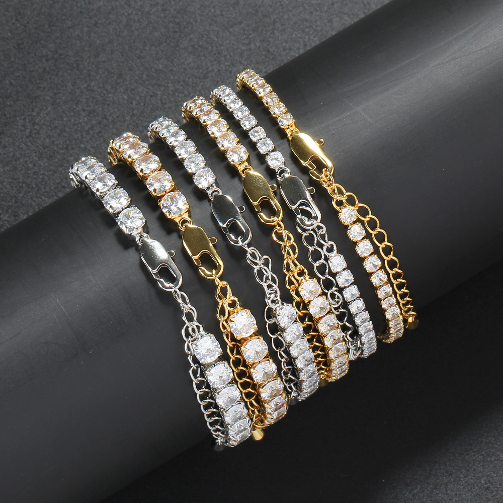 Copper Inlaid Zircon Bracelet 3mm 4mm 5mm Tennis Chain