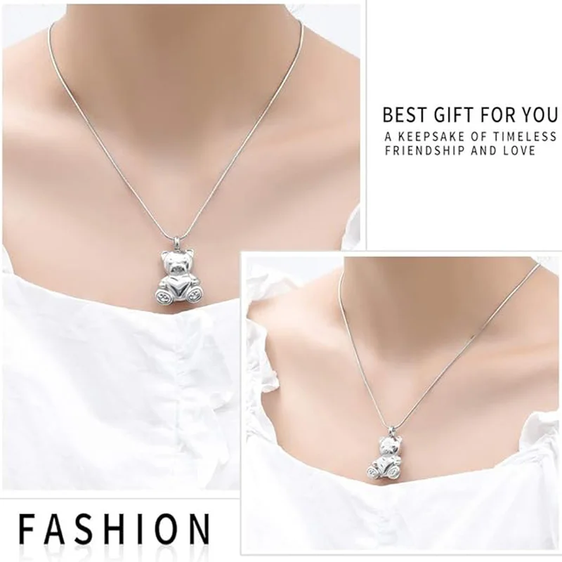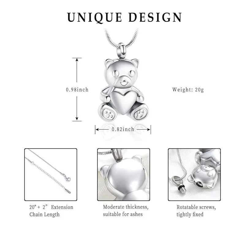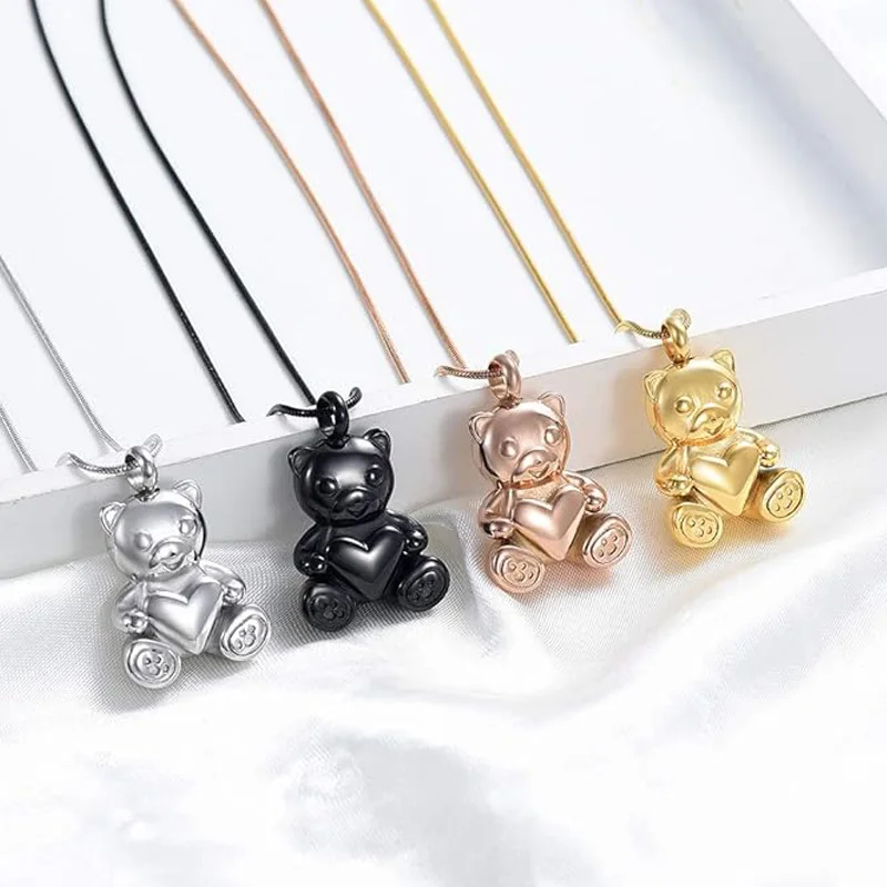 Cremation jewelry cute love bear stainless steel urn necklace to commemorate the dead relatives used for cremation funeral quantity