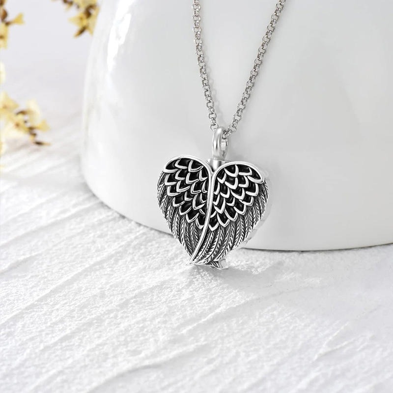 Cremation jewelry heart-shaped stainless steel engraved jewelry jar pendant, women’s commemorative ash jewelry pendant necklace