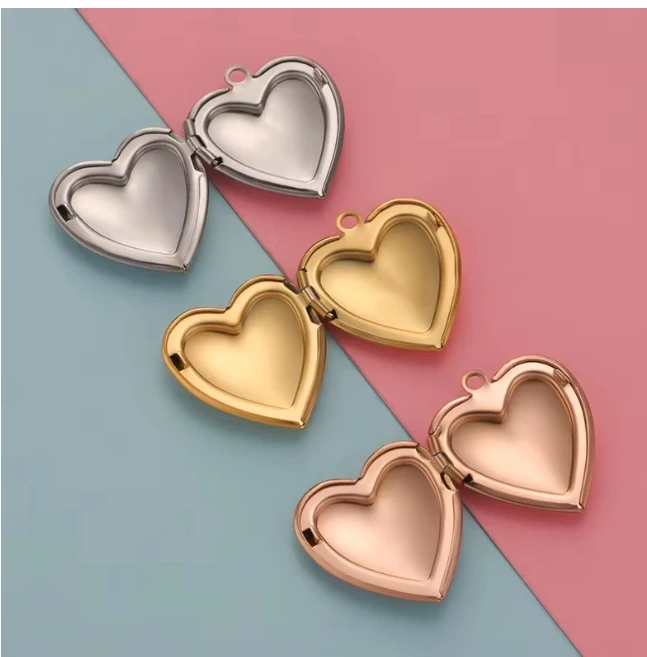 Cremation jewelry heart-shaped stainless steel smooth heart-shaped photo frame pendant with clip for placing ashes jewelry quantity
