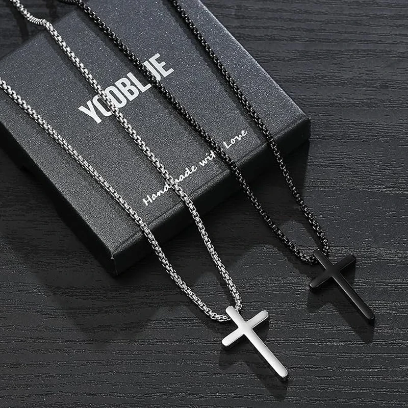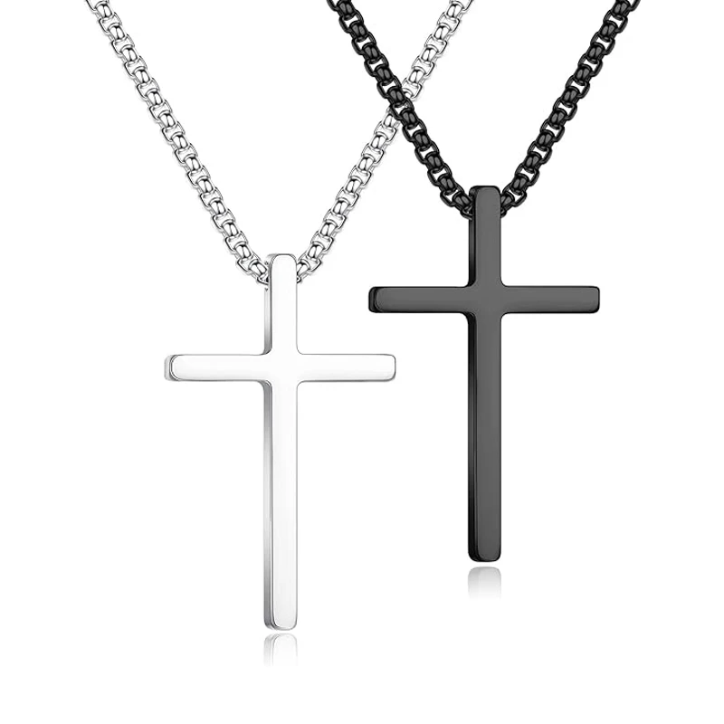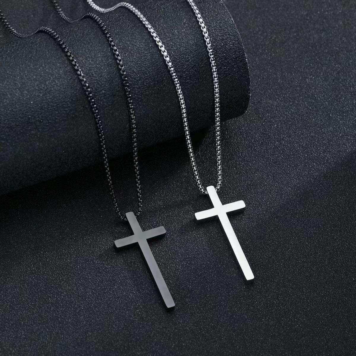 Cremation jewelry men's cross necklace silver black two-color cross necklace stainless steel cross pendant jewelry men's boy quantity