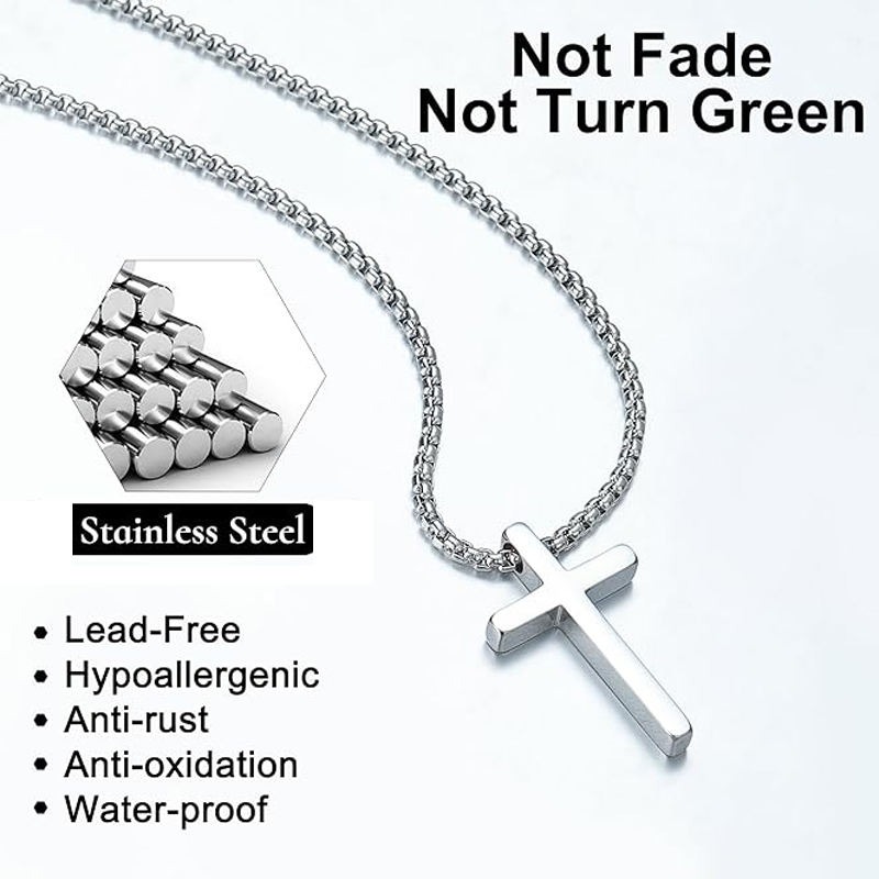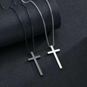 Cremation jewelry men’s cross necklace silver black two-color cross necklace stainless steel cross pendant jewelry men’s boy