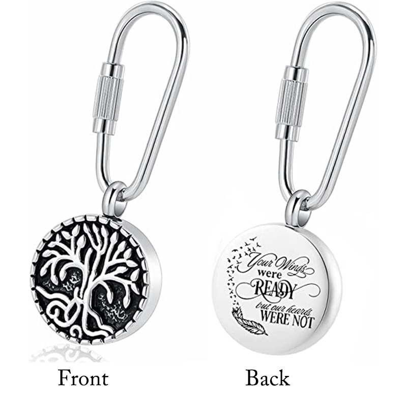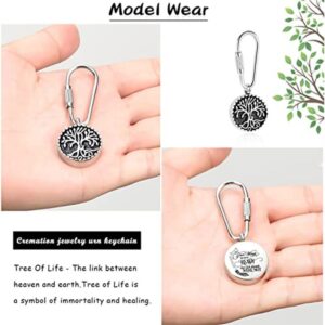 Cremation Jewelry Round Urn Keychain for Pet Ashes Stainless Steel Keepsake Urns Tree of Life Pendant Key Ring for Women Men
