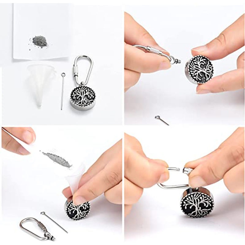 Cremation Jewelry Round Urn Keychain for Pet Ashes Stainless Steel Keepsake Urns Tree of Life Pendant Key Ring for Women Men quantity