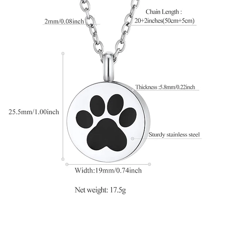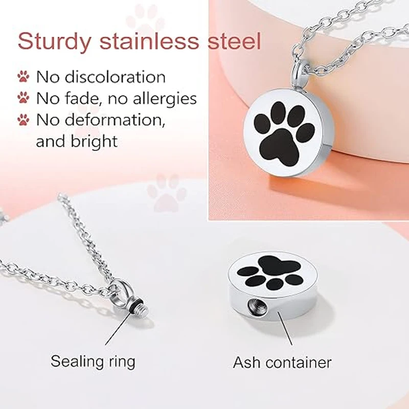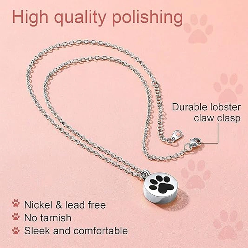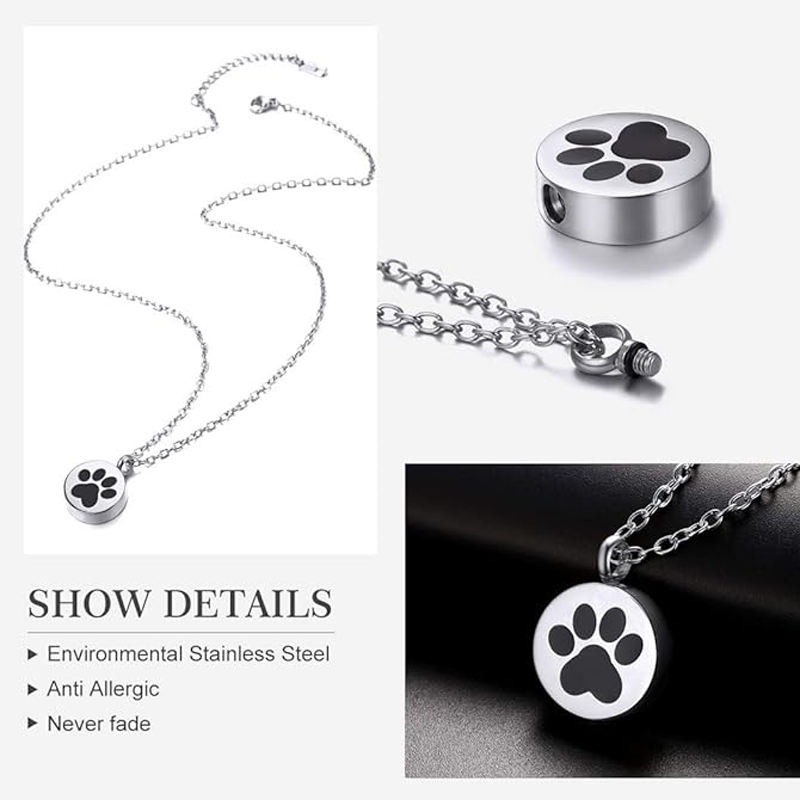 Paw Urn Cremation Necklace stainless steel Dog Cat Pet Paw Print Cremation Jewelry for Pet Ashes Keepsake Charm Pendant Necklace