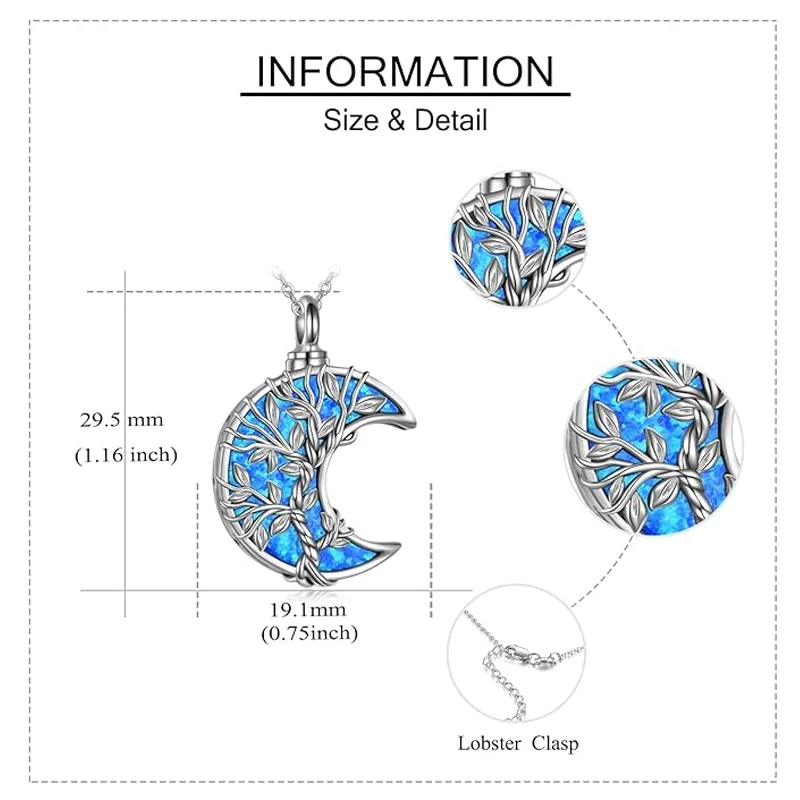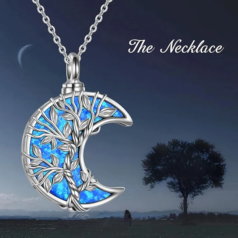 Cremation jewelry, stainless steel oval moon urn necklace, silver ash tree, abalone shell, opal, memory jewelry, men and women quantity