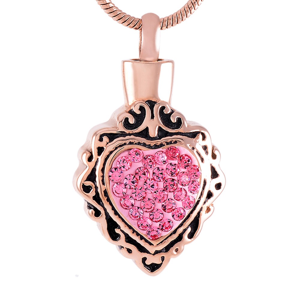 Cremation jewelry stainless steel urn with heart-shaped gemstone urn pendant with filling kit for cremation funeral quantity