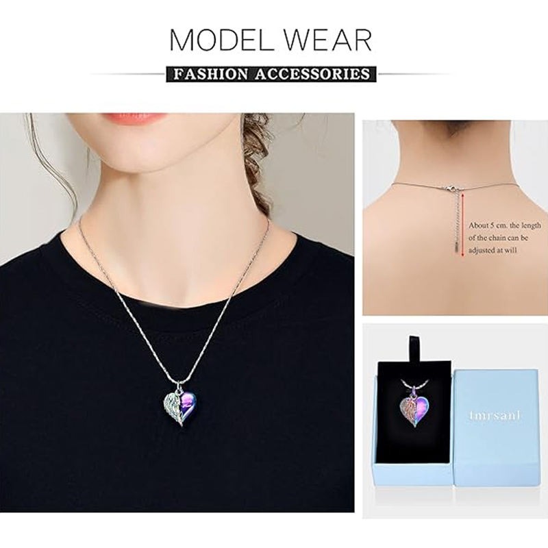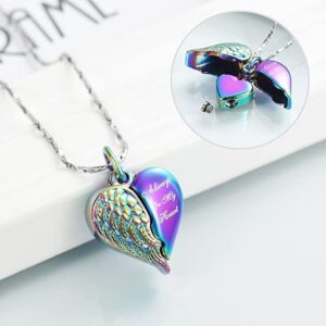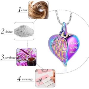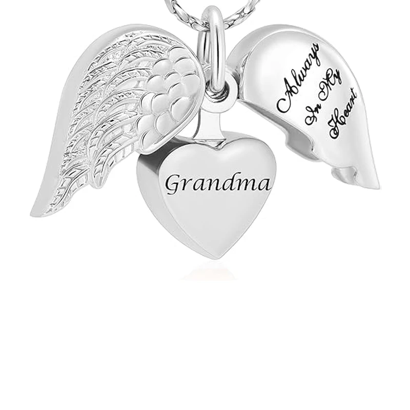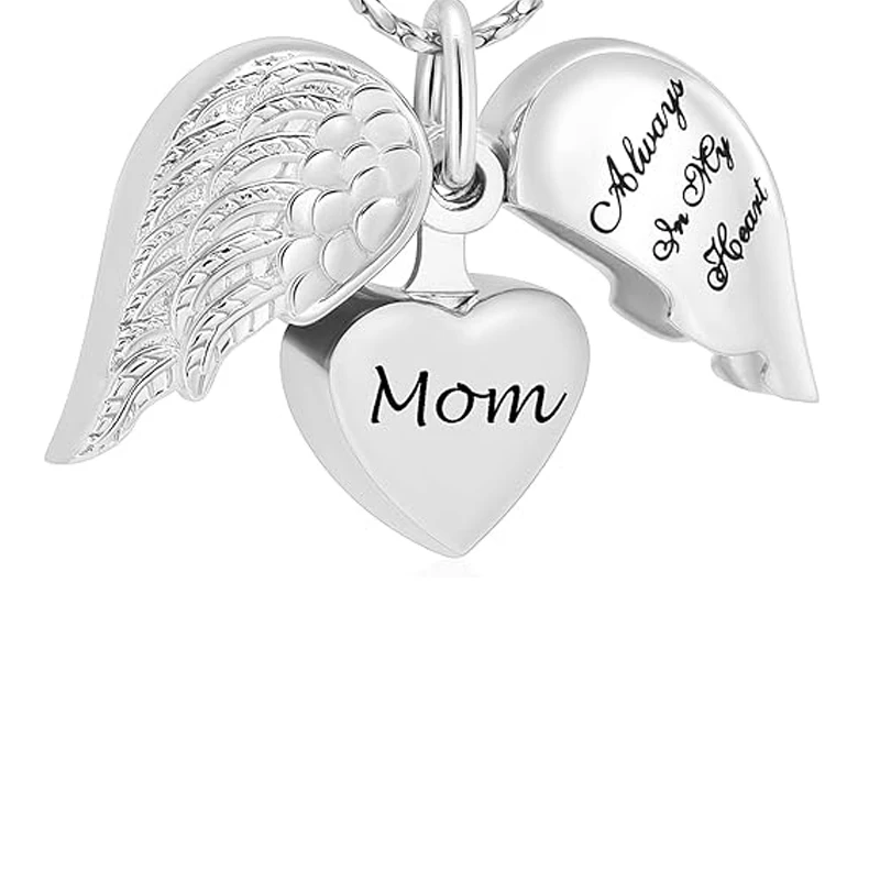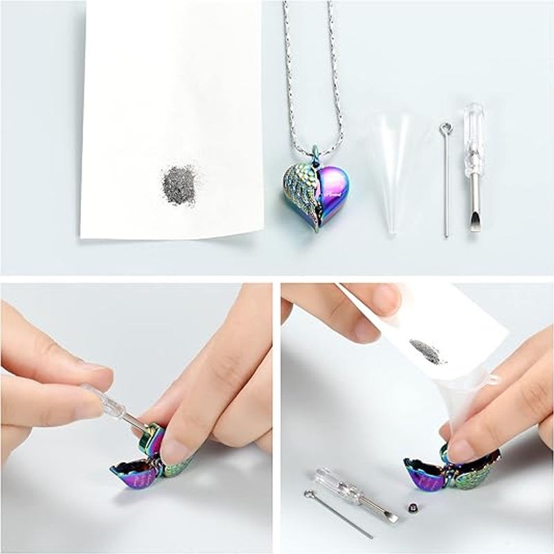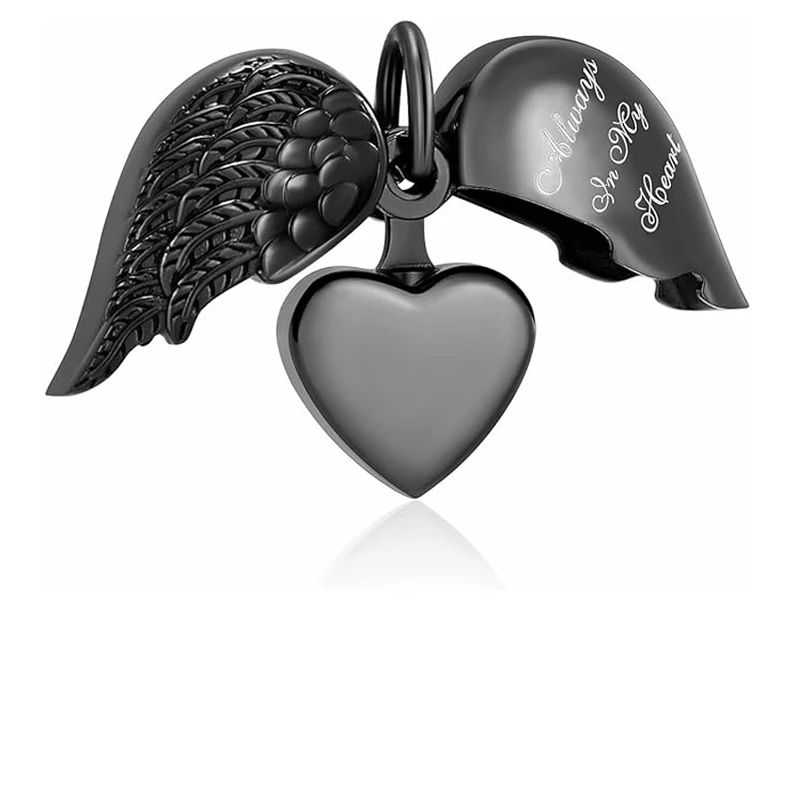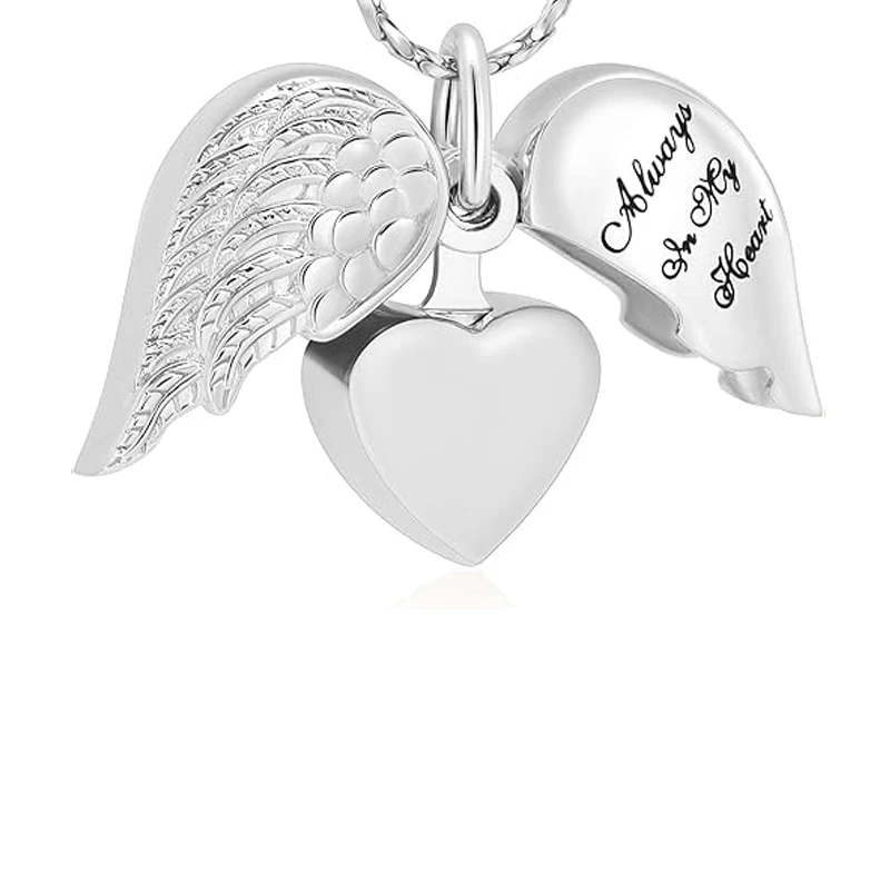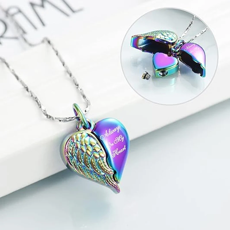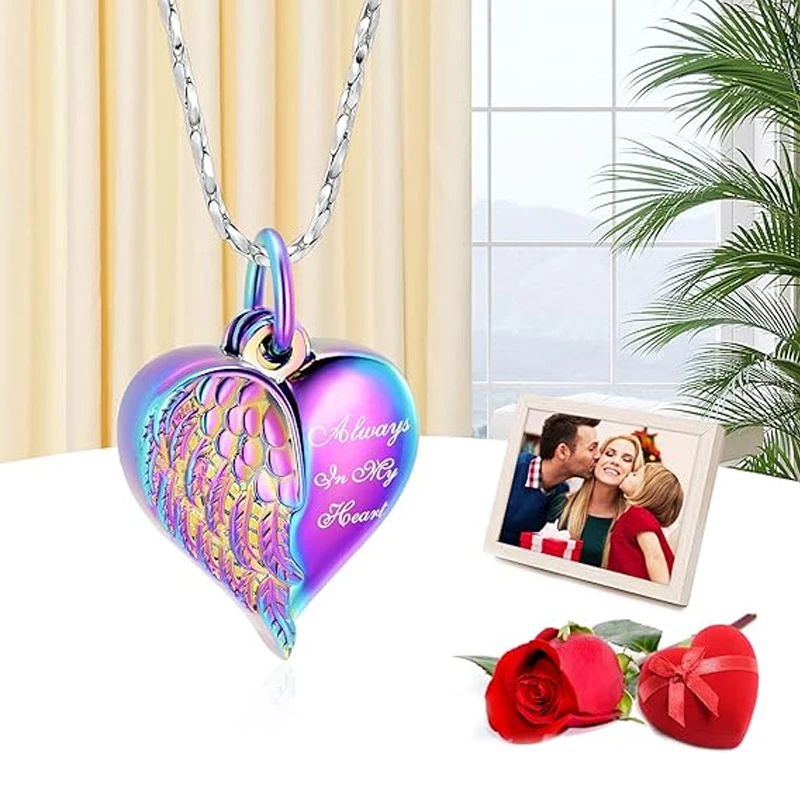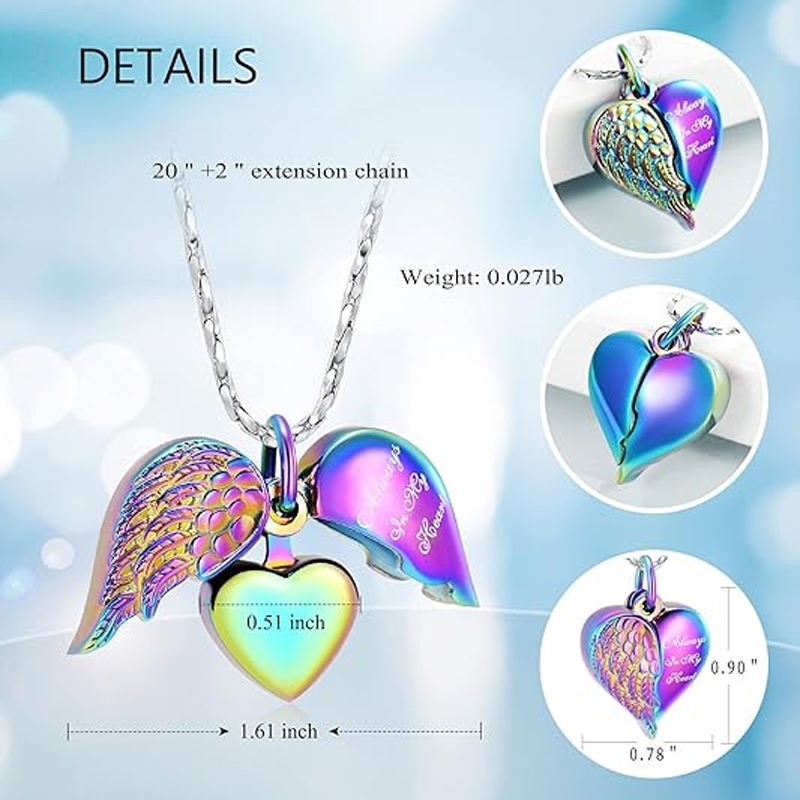 Cremation jewelry suitable for ashes, heart-shaped ashes, necklace, gray men and women, family commemorative angel wings