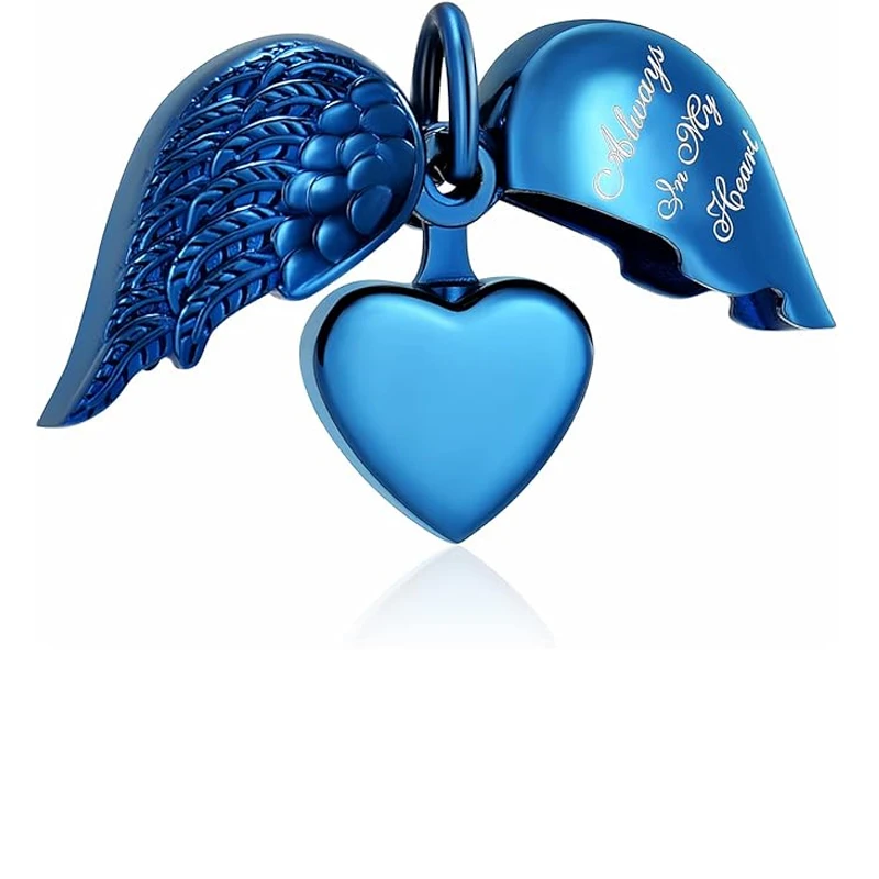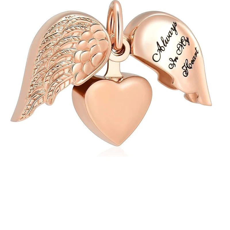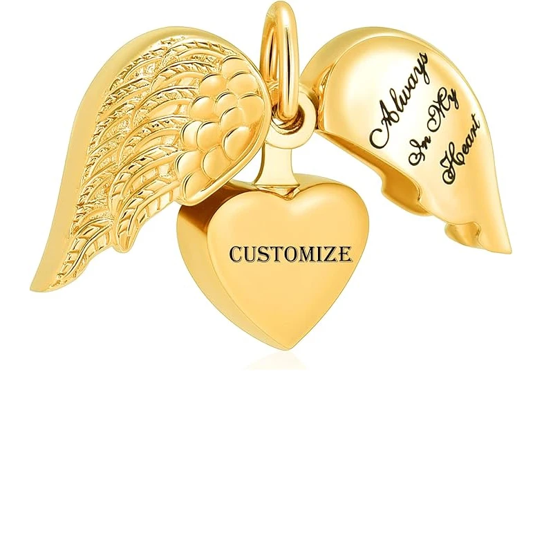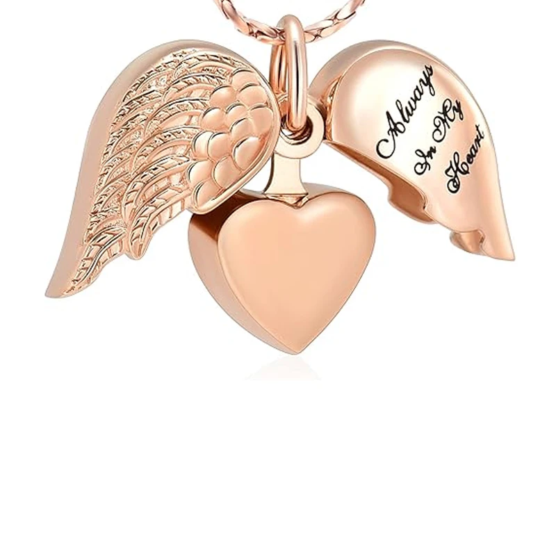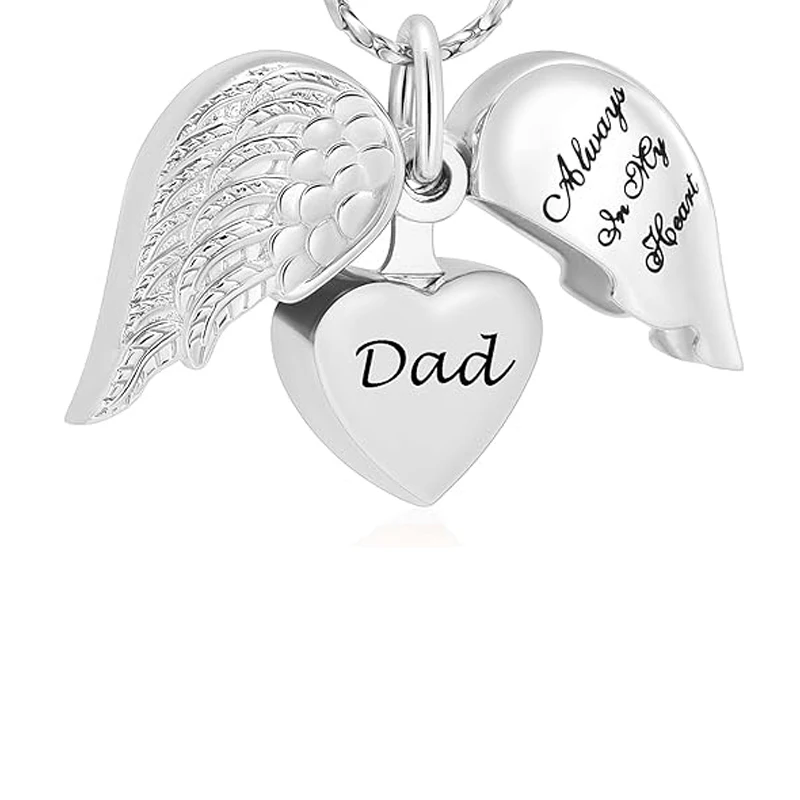 Cremation jewelry suitable for ashes, heart-shaped ashes, necklace, gray men and women, family commemorative angel wings quantity