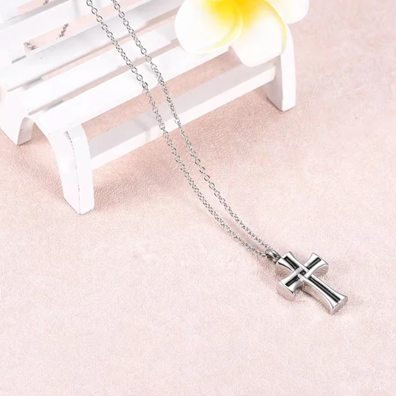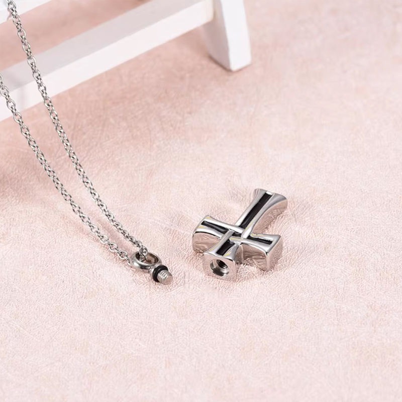 Cross bone necklace suitable for ashes, crystal cremation pendant, ashes souvenir, cremation jewelry, suitable for men and women